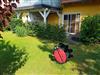 • Eine Kinderküche, Spielhäuser, eine Schultafel und mehrere Fahrgeräte stehen im Garten für alle Kinder bereit.