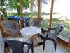 Zu dem Ferienhaus gehört eine geräumige Diele, wo sich auch eine gemütliche Sitzgruppe befindet. Von dort können Sie am Abend einen herrlichen Blick auf das Meer genießen.
