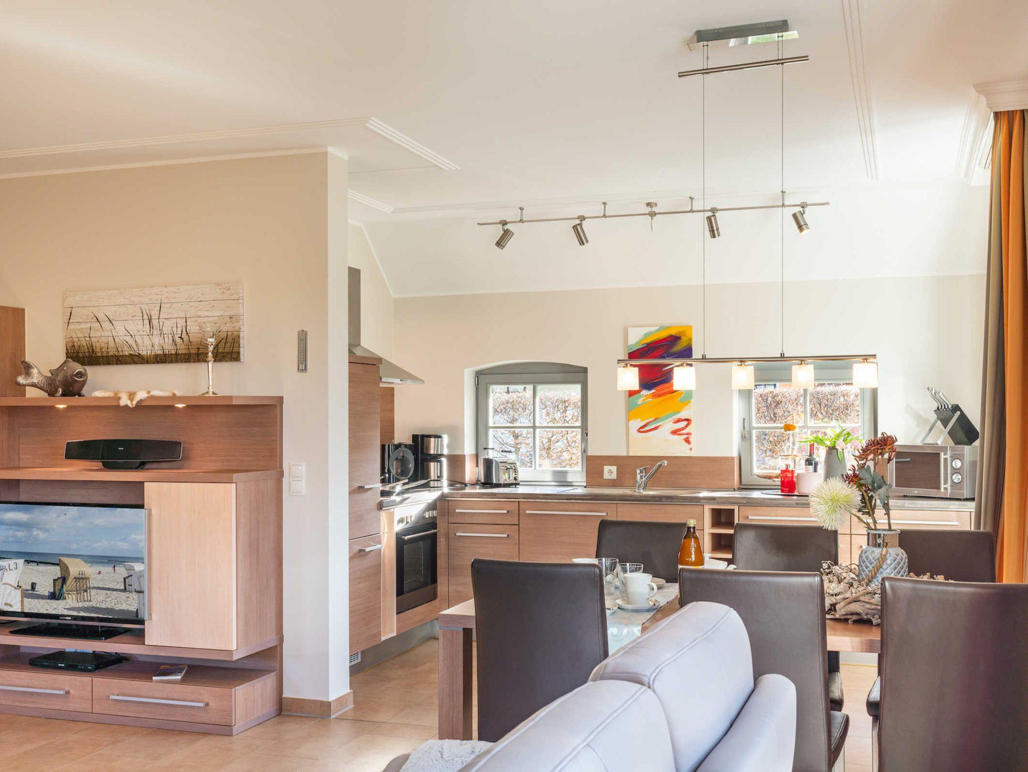 Dieses freistehende reetgedeckte Ferienhaus mit 110qm Wohnfläche wurde auf einem großzügigen und liebevoll gestaltetem Grundstück errichtet. Urlaubserleben und Komfort spiegeln sich in stilvoller Einrichtung im Wohn-und Eßbereich mit Kamin, den 2 Schlafzimmern, 2 Bädern+ Sauna und der idyllischen Sonnenterrasse wieder.