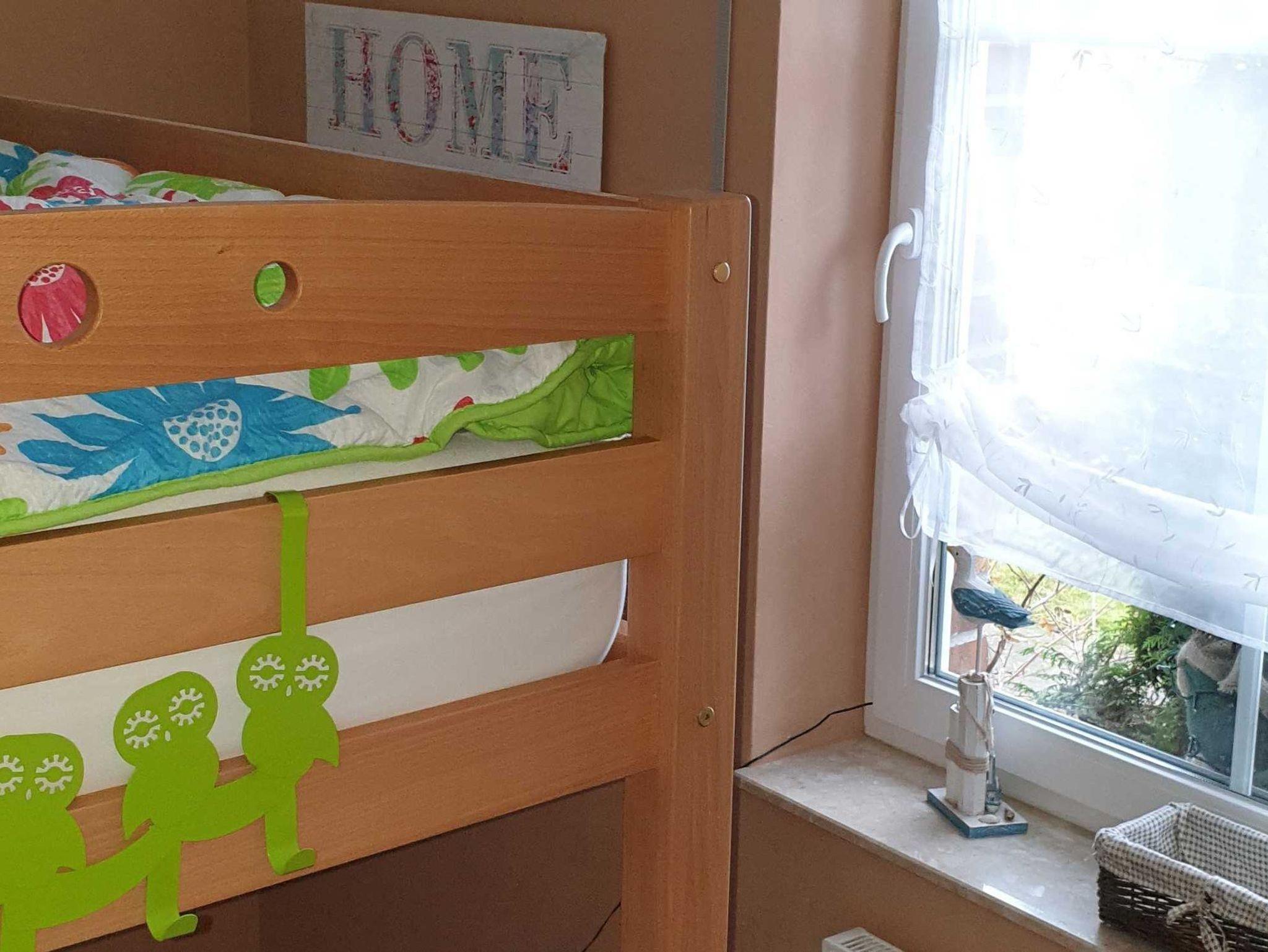 Die Ferienwohnung befindet sich in einer Doppelhaushälfte (letzte Renovierung 2024) in ruhiger Waldrandlage am Ortsrand des Seebades Loddin. Über ihre eigene Terrasse erreichen sie den Eingang ihrer Ferienwohnung. Im Erdgeschoss gibt es einen Wohn/Essbereich mit einer gut ausgestatteten Küche, ein Bad mit bodengleicher Dusche und mit WC. Ein kleines Schlafzimmer mit einem Etagenbett für 2 Personen befindet sich ebenfalls imErdgeschoss. Das zweite Schlafzimmer mit Doppelbett erreichen sie über eine Wendeltreppe. Unsere Ferienwohnung ist maritim und gemütlich ausgestattet. Haustiere sind im eigenen Körbchen herzlich willkommen.