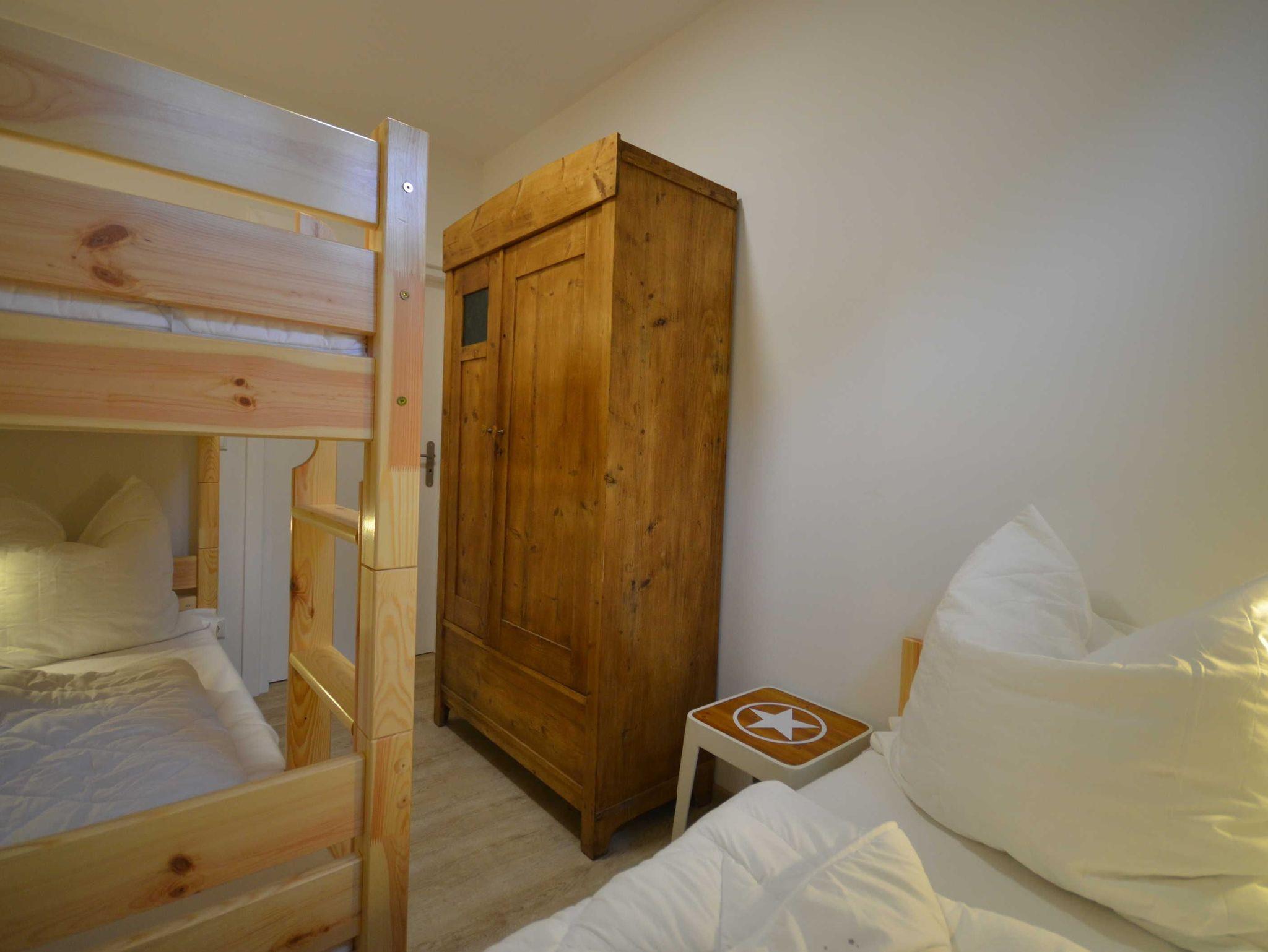 • Schlafzimmer 2 ist mit einem Etagenbett und einem Einzelbett ausgestattet, wo 3 Personen Platz finden.
