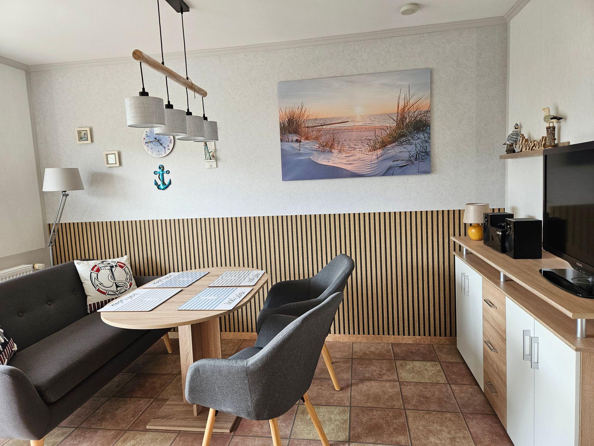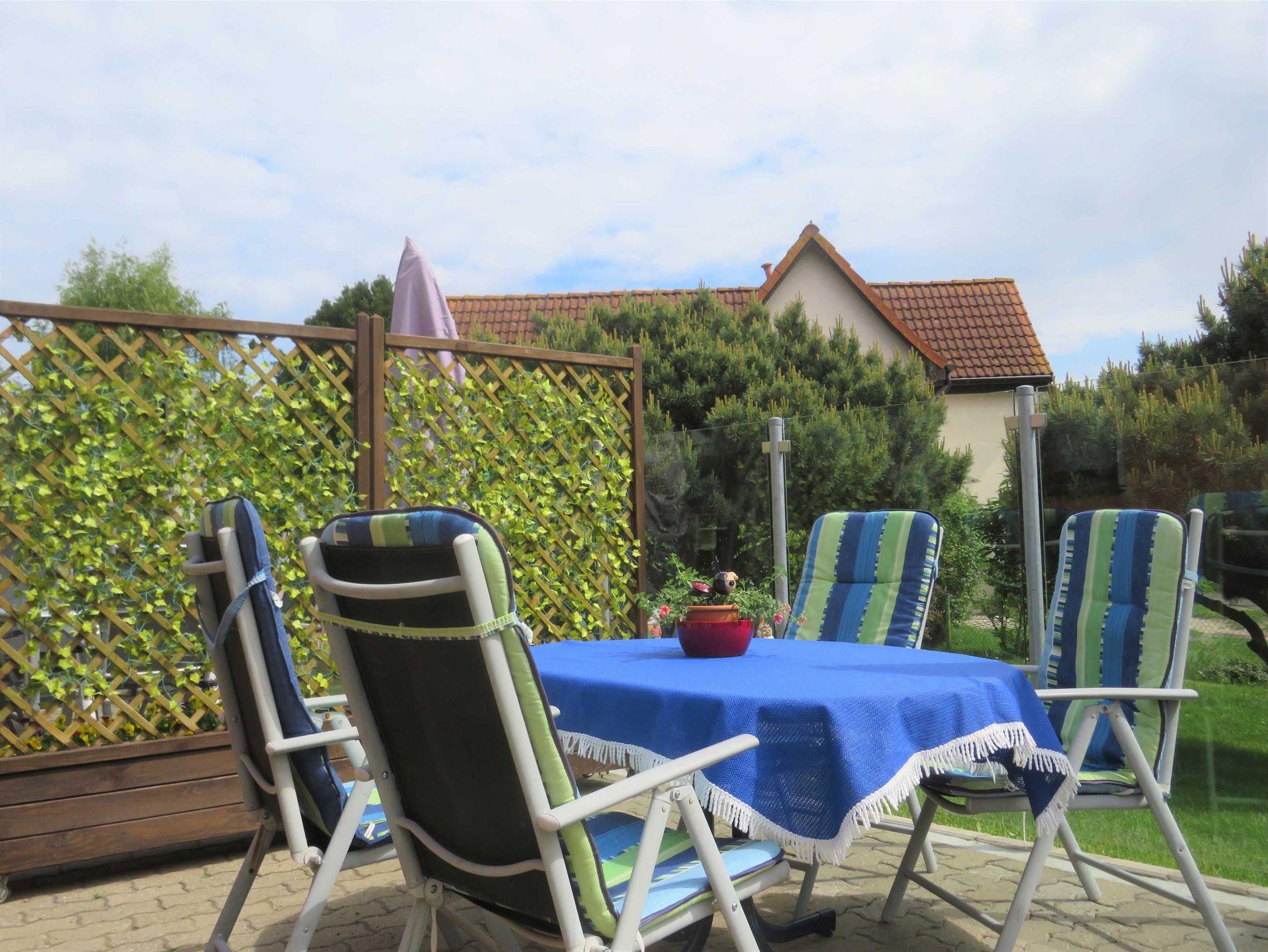 Wir vermieten eine moderne Ferienwohnung im Erdgeschoss eines Wohnhauses. Im Wohnzimmer mit gemütlicher Couch, Fernseher und Radio ist eine offene Küchenzeile integriert. Das Schlafzimmer verfügt über ein Doppelbett und zwei Einzelbetten. Ein Bad mit Dusche und WC sowie eine Terrasse mit Grillmöglichkeit gehören ebenso zur Ferienwohnung dazu. Für Ihre mitgebrachten Fahrräder ist eine Unterstellmöglichkeit vorhanden. Ein PKW-Stellplatz befindet sich auf dem Grundstück. Kinderreisebett und Hochstuhl sind auf Wunsch dazu zu mieten. Die Ferienwohnung ist in ruhiger Lage in der Nähe des Achterwassers. Die Erstausstattung Bettwäsche und Geschirrtücher sind inklusive. Handtücher auf Anfrage.