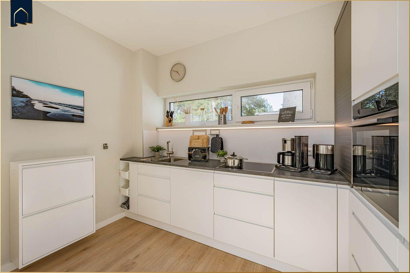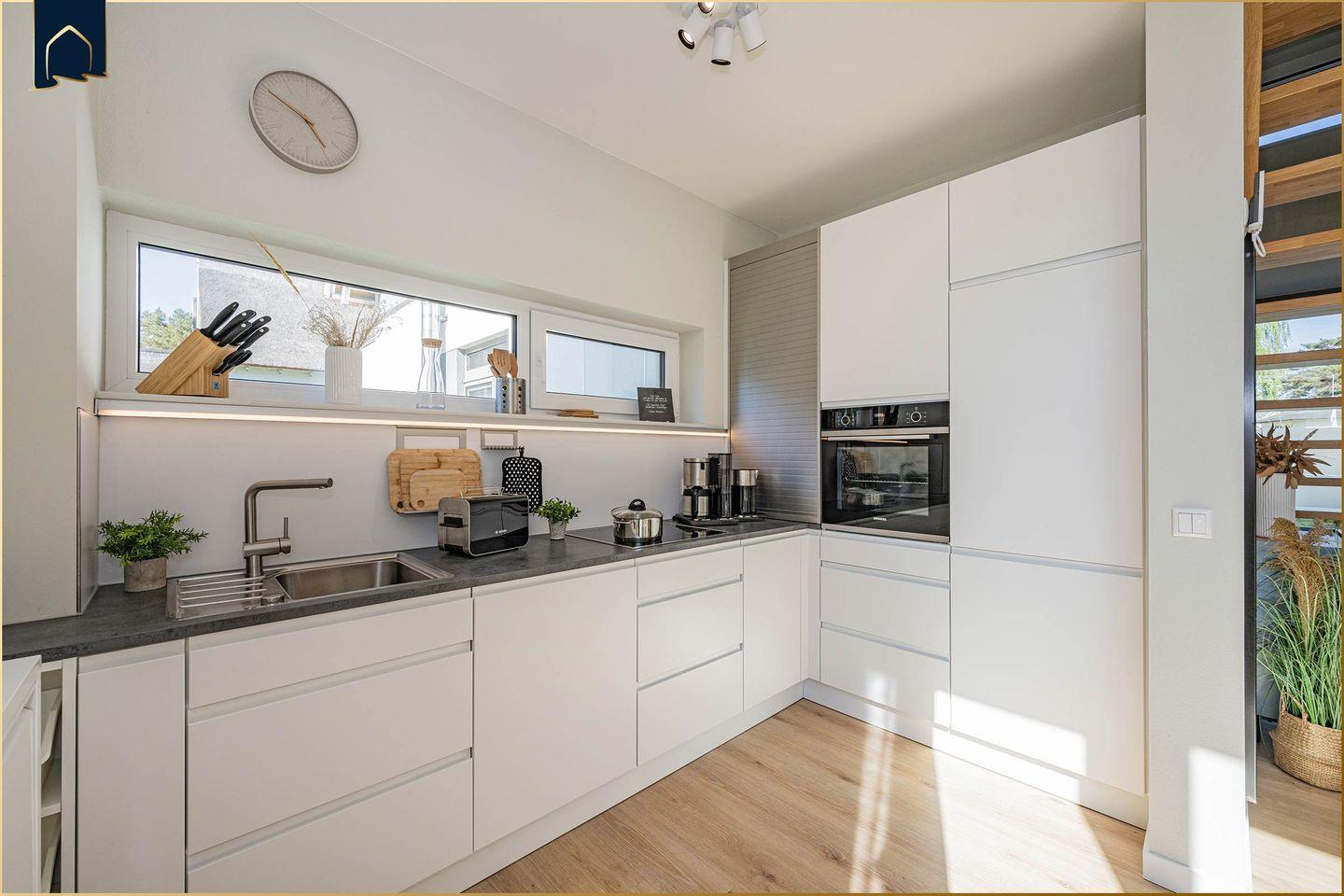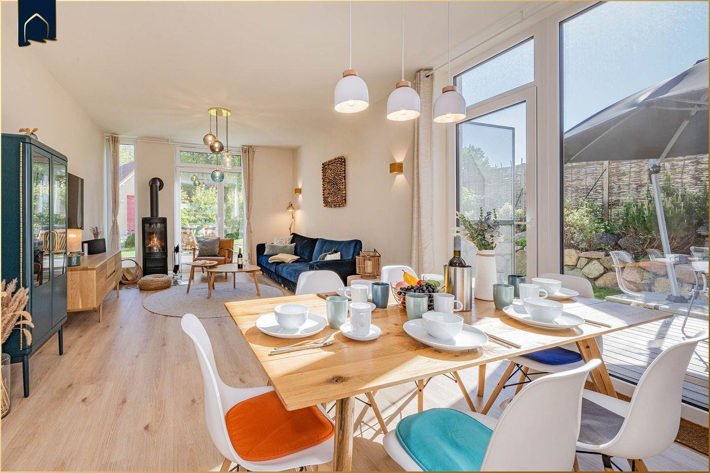 Willkommen im „Reethus bei den Wassern“, Ihrem Feriendomizil auf der Sonneninsel Usedom. Inmitten der unberührten Natur Usedoms und des historischen Fischerorts Loddin, bietet dieses im Jahr 2021 neu errichtete Architektenhaus mit Reetdach eine perfekte Symbiose aus traditioneller Baukunst und moderner Ausstattung. Mit seinen 133 qm auf zwei Etagen bietet das Reethus ausreichend Platz für bis zu 6 Gäste. Der offen gestaltete, lichtdurchflutete Wohn- und Essbereich mit integrierter Küche und behaglichem Kamin ist das Herzstück des Hauses und bietet ideale Bedingungen für gesellige Stunden mit Familie und Freunden. Drei geschmackvoll eingerichtete Schlafzimmer und zwei hochwertige Badezimmer mit Walk-in-Duschen, ergänzt durch ein separates Gäste-WC, gewährleisten Privatsphäre und Komfort.