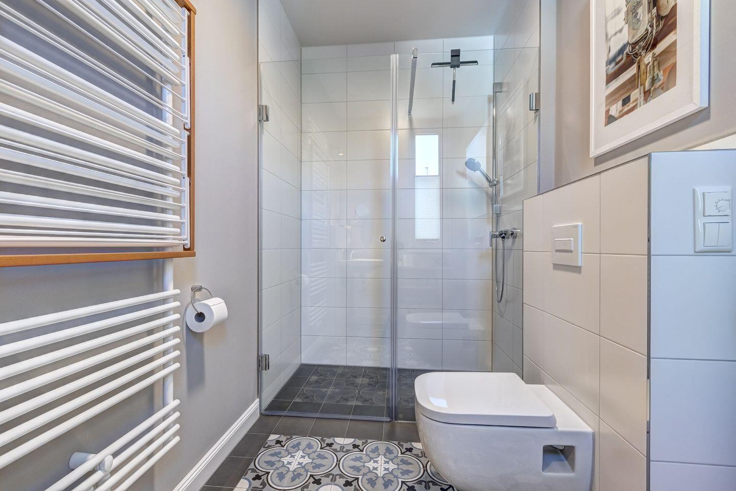 Es verfügt über drei Schlafzimmer, eine Sauna, einen kleinen Wellnessbereich, zwei hochwertig ausgestattete Badezimmer mit begehbaren Duschen sowie ein zusätzliches WC.
