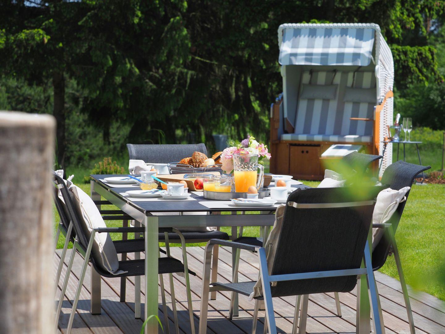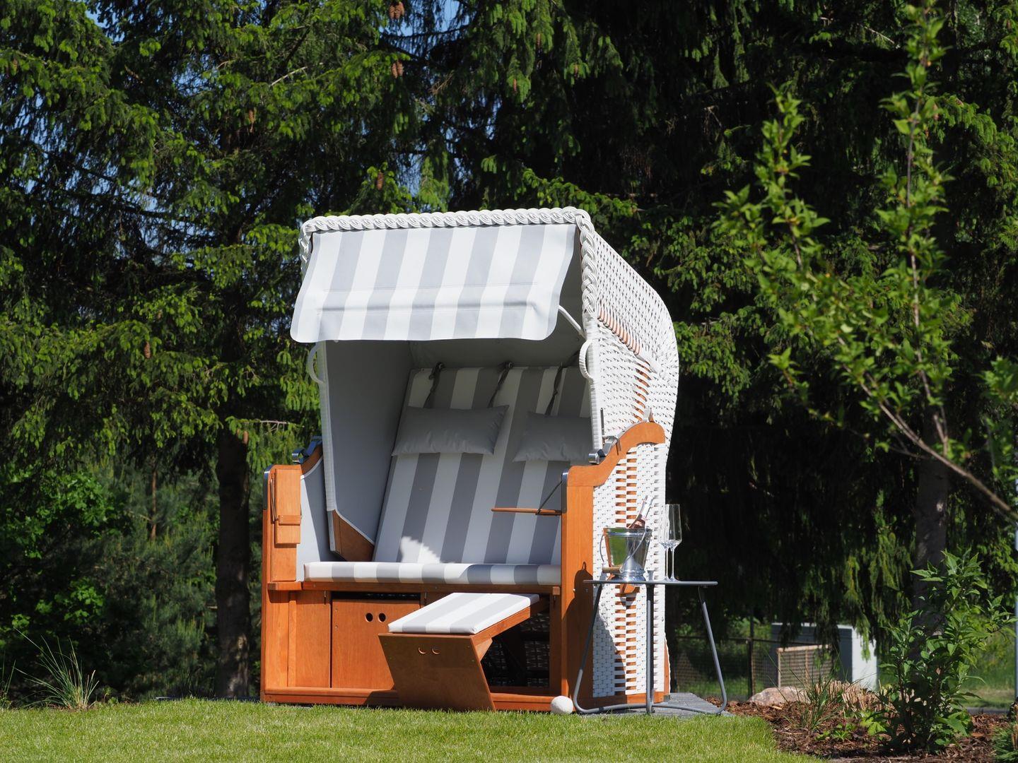 Genießen Sie die hochwertige Ausstattung, den Garten mit Strandkorb und die großzügige Terrasse für unvergessliche Momente!
