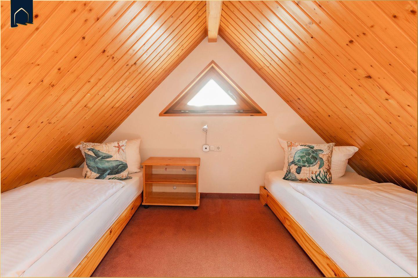 Dank der zwei Etagen bietet die Wohnung ausreichend Raum für Privatsphäre und gemeinsame Zeit. Nach einem erlebnisreichen Tag können Sie in der privaten Sauna entspannen, während die Kinder im Garten spielen oder Sie es sich mit einem Buch im gemütlichen Sessel bequem machen. Fliegengitter, Sichtschutz an allen Fenstern sowie zahlreiche Komfortausstattungen wie Waschmaschine, Geschirrspüler, Haartrockner, Kaffeemaschine und Mikrowelle sorgen für einen rundum angenehmen Aufenthalt.