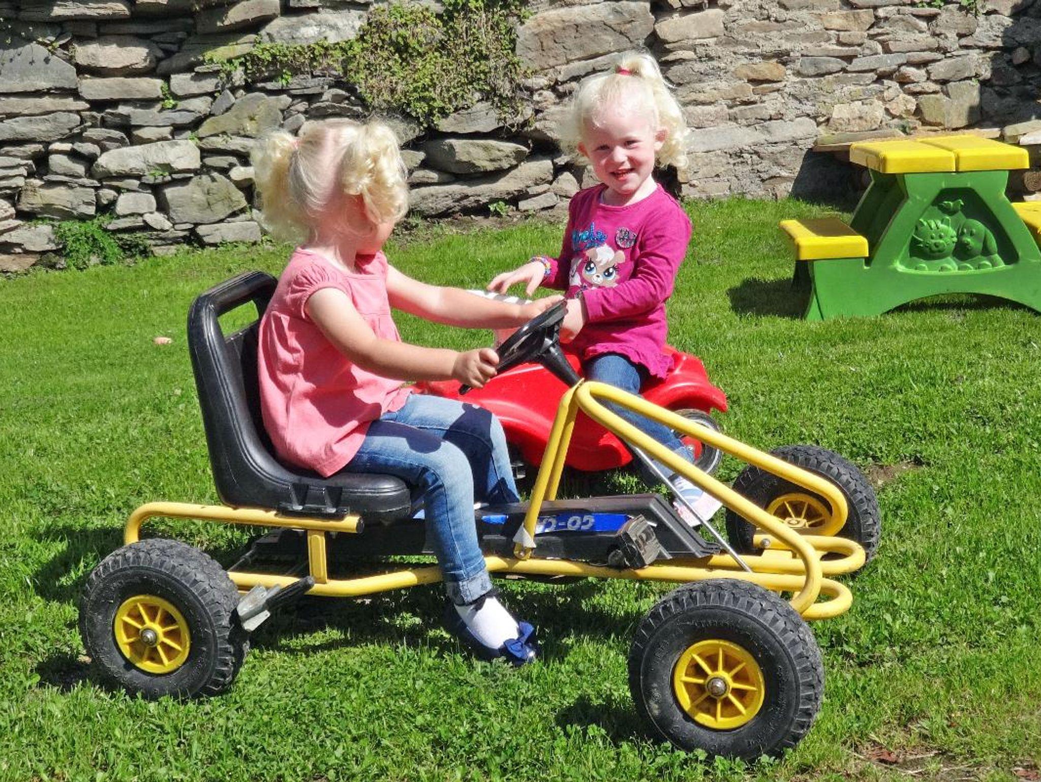 Tretfahrzeuge, Spielhaus und eine Spielscheune mit Tischkicker,
