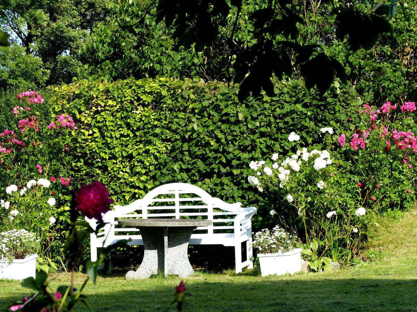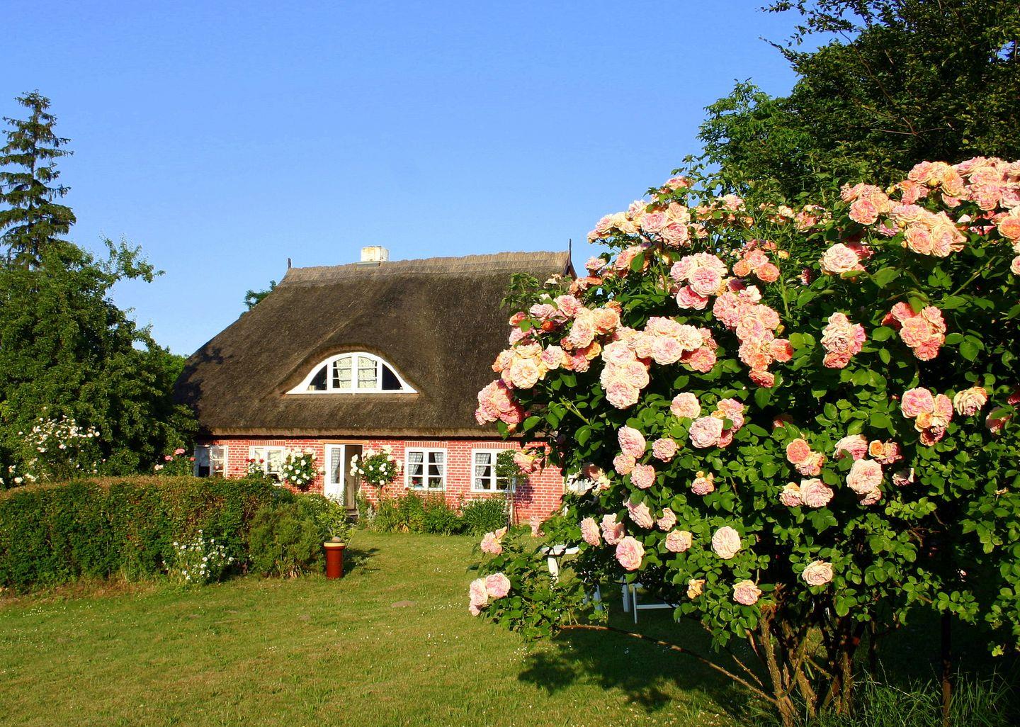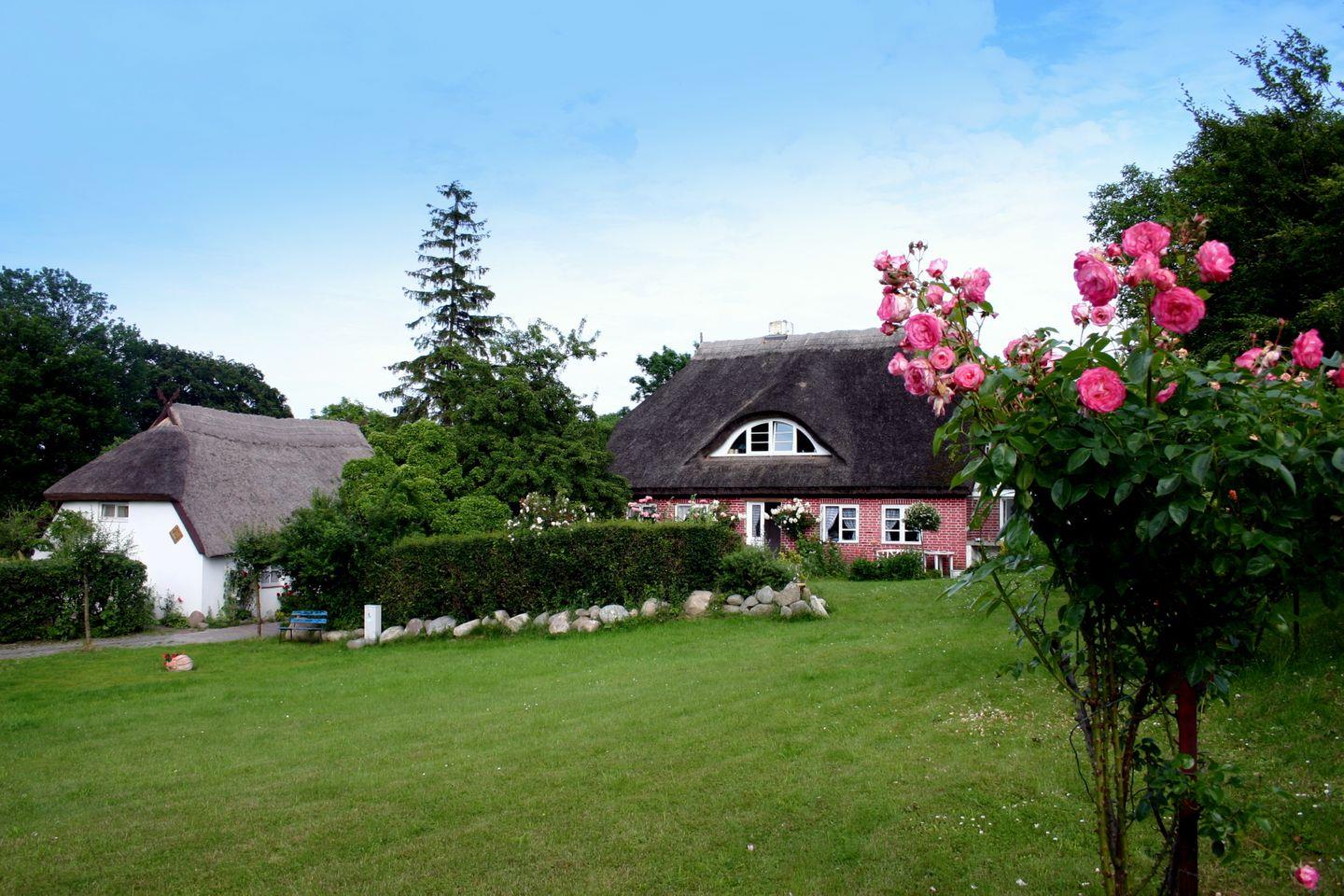 Das Anwesen mit 2 reetgedeckten Häusern stammt aus der Mitte des 19.Jh. und liegt in einem 3000 qm großen Garten, durch den ein kleiner Bachlauf fließt. Uralte Obstbäume und unzählige Blühpflanzen erfreuen den Naturliebhaber vom Frühling bis in den Herbst. Die beiden Wohnungen im Backsteinhaus sind individuell im Landhausstil ausgestattet. Es gibt separate Eingänge und Terrassen, Sat-TV und einen Parkplatz. Die kleine Reethaushälfte befindet sich auf dem gleichen Grundstück wie das Backsteinhaus, verfügt über eine eigene Tetrasse sowie einen Gartenanteil.