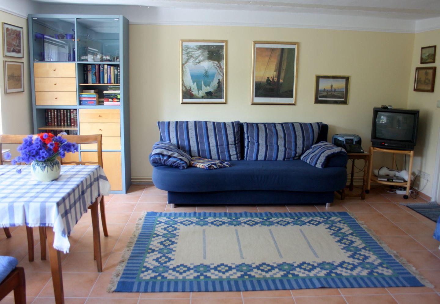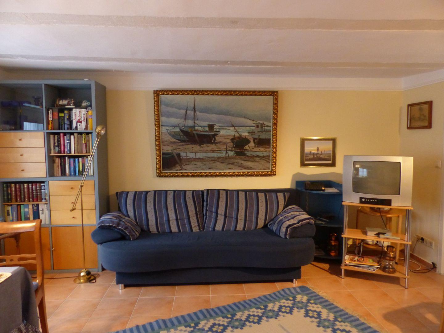 Die Wohnung im Erdgeschoss bietet auf 41qm Wohnfläche Platz für 4 Personen. Sie besteht aus einem Wohnzimmer (mit Schlafcouch) und einem Schlafzimmer mit Doppelbett. Die großzügige Einbauküche beinhaltet einen 4-Plattenherd, Backofen, Dunstabzugshaube, Fondue, Kaffeemaschine, Kochzeile, Kühlschrank, Mixer, Raclette, Sandwichtoaster, Staubsauger, Toaster und eine Wasserkocher. Im Badezimmer finden Sie eine ebenerdige Glasdusche und WC. Weiterhin stehen ein Kinderbett und ein Kinderhochstuhl zur Verfügung. Die Technik der Wohnung beinhaltet: CD-Player, Flachbildfernseher, Kassettenrekorder und Telefon. Der Garten mit Terrasse verfügt über Gartenmöbel und einen PKW-Stellplatz.