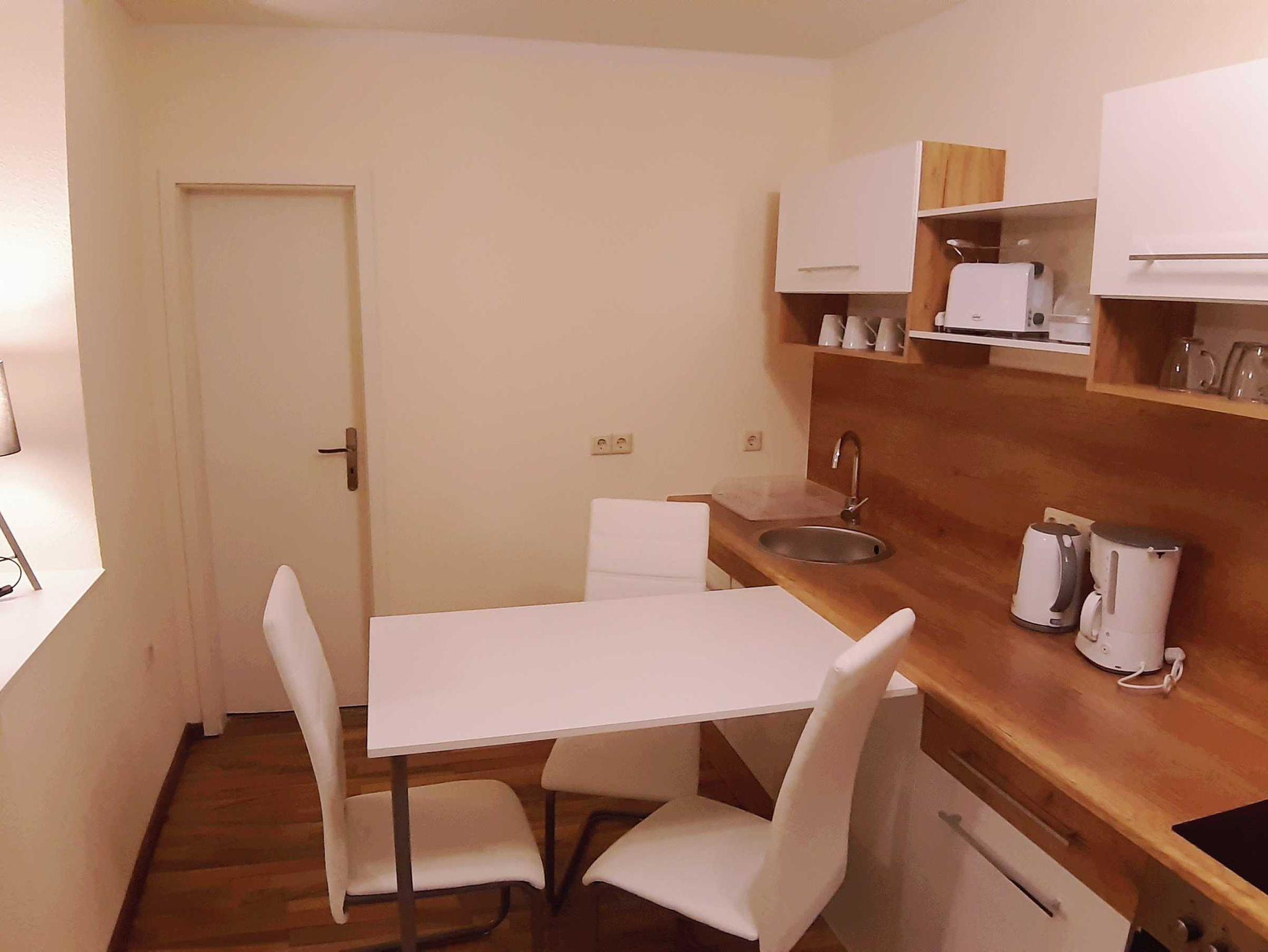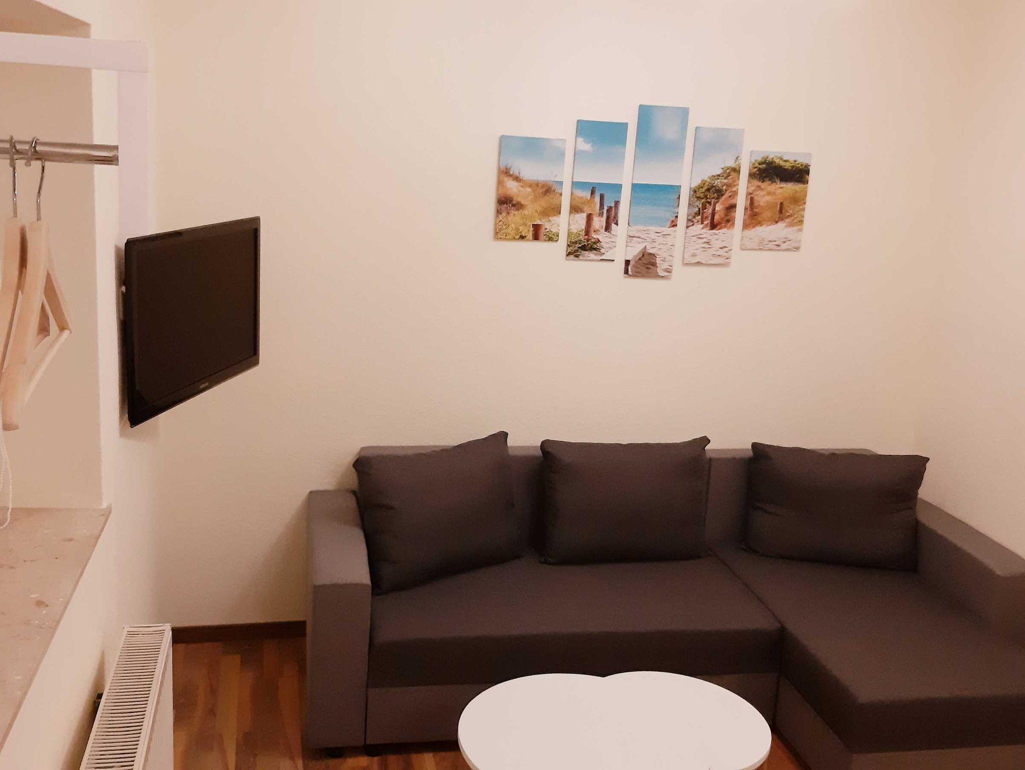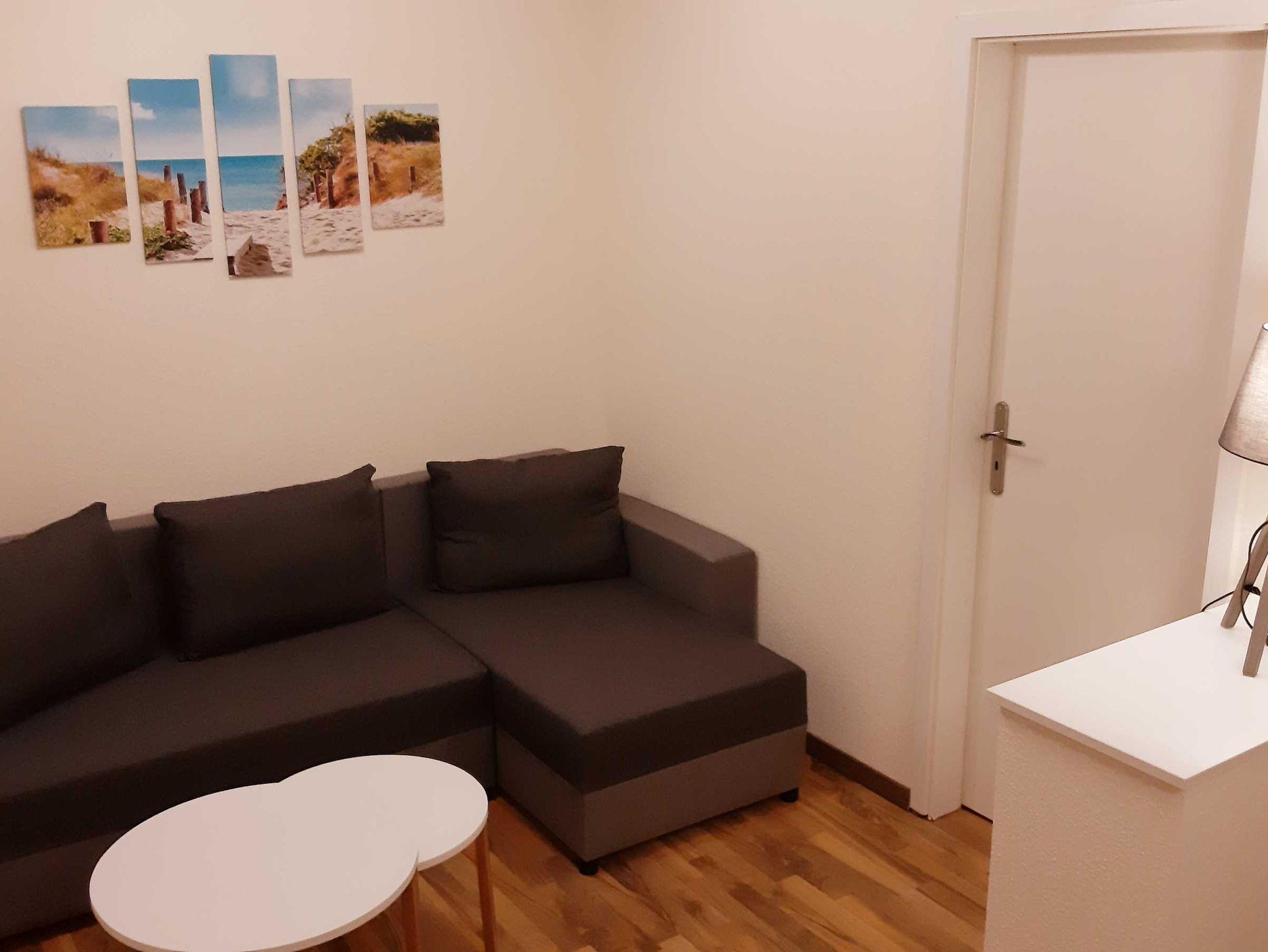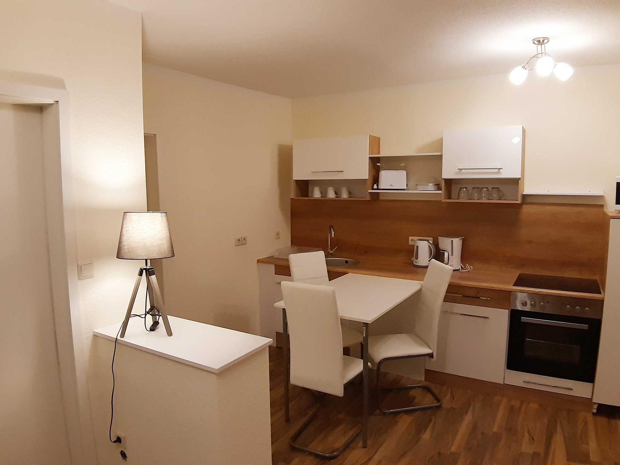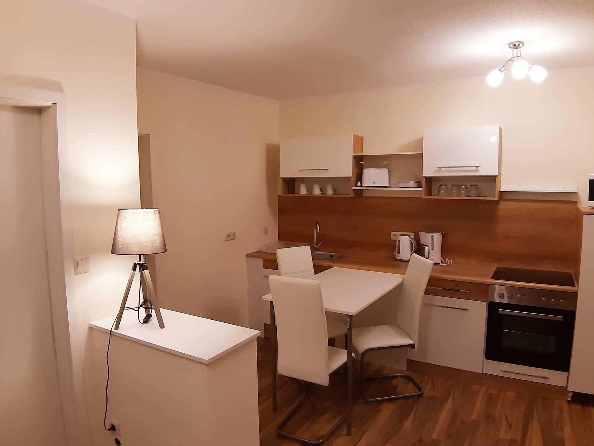 28 qm Ferienwohnung mit eingezäunten Garten (der Garten wird von 2 Ferienwohnungen genutzt). Die Wohnung hat ein Schlafzimmer mit Doppelbett. Einen Wohnbereich mit Schlafcouch. Küche mit Essbereich. Die Küche ist ausgestattet mit Backofen, Ceranfeld, Toaster, Wasserkocher, Kaffeemaschine und Kühlschrank. Ein Badezimmer mit Dusche. Im Wohnbereich gibt es eine Flachbild-TV.