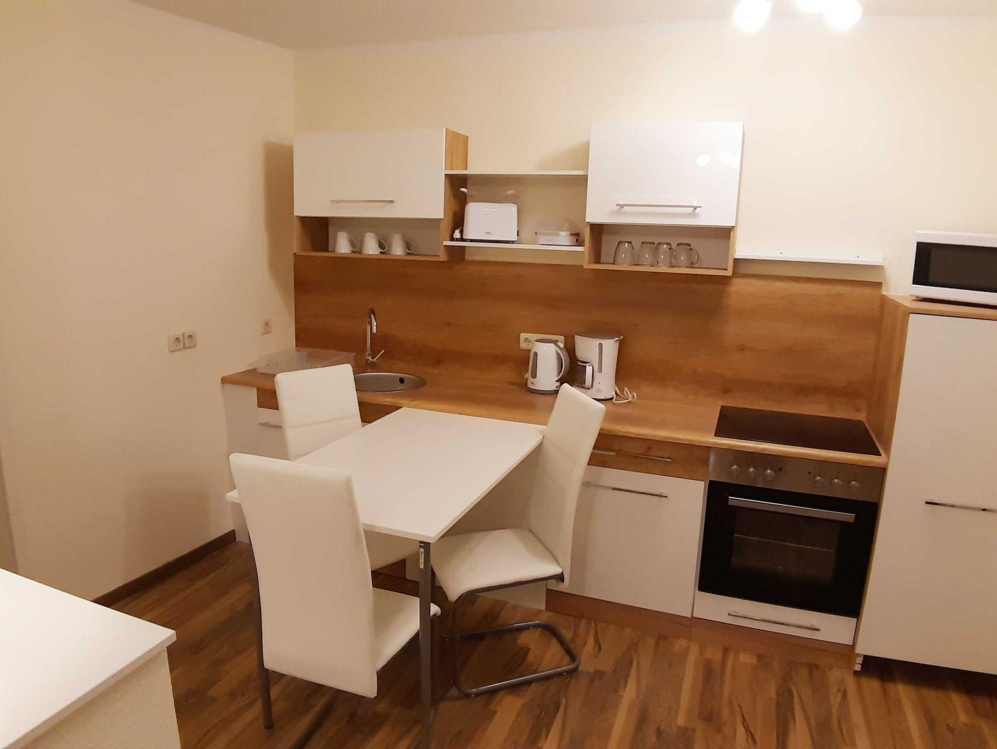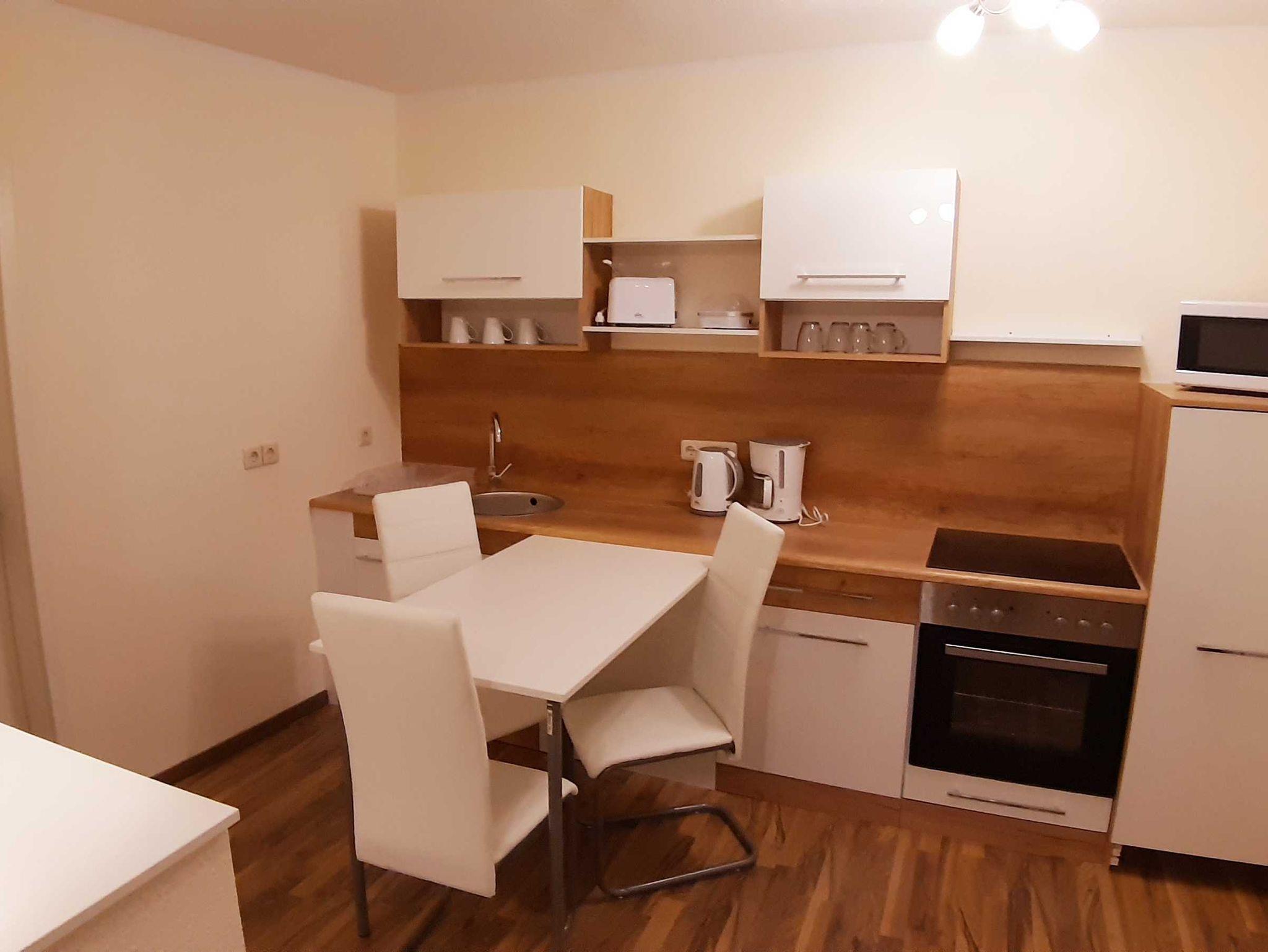 Die Wohnungen haben ein Schlafzimmer mit Queensize-Bett. Einen Wohnbereich mit Schlafcouch.. Küche mit Essbereich. Die Küche ist ausgestattet mit Backofen, Ceranfeld, Toaster, Wasserkocher, Kaffeemaschine und Kühlschrank. Ein Badezimmer mit Dusche. Im Wohnbereich gibt es eine Flachbild-TV.