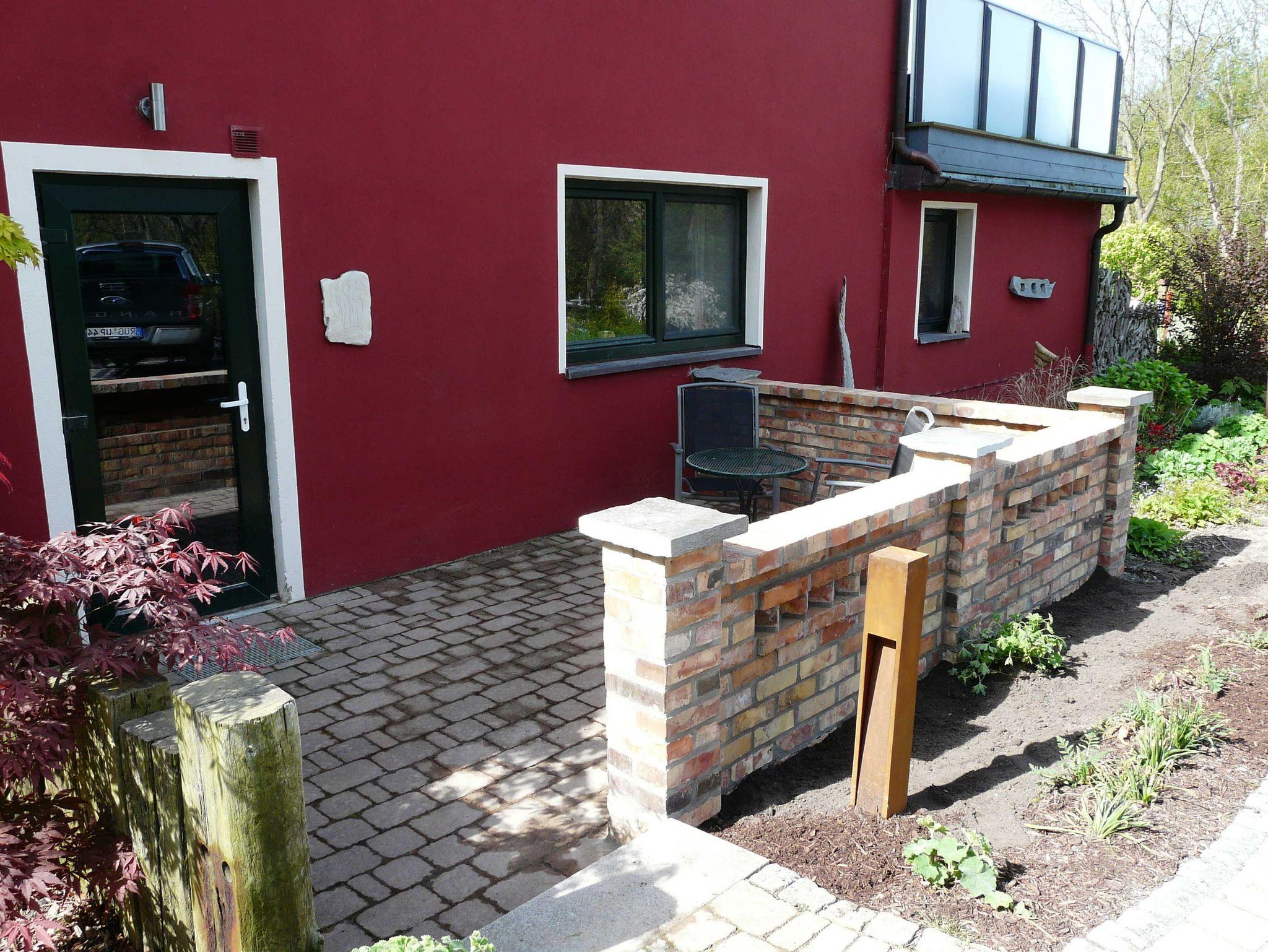 Zu jeder Wohnung gehört eine Außenterrasse mit Gartenmöbeln, Sonnenschirm und Grillmöglichkeit. Darüber hinaus finden Sie bei uns einen großen Natur- und Nutzgarten, in dem Sie neben vielfältig angelegten Beeten auch noch Wegrandblumen und Heilpflanzen sowie verschiedene Ruhezonen mit Sitzgruppen und Liegen zum Entspannen finden. Manchmal ganz offensichtlich, bisweilen recht versteckt können Sie im Garten Kunstobjekte des Hausherren entdecken und bei Gefallen käuflich erwerben.