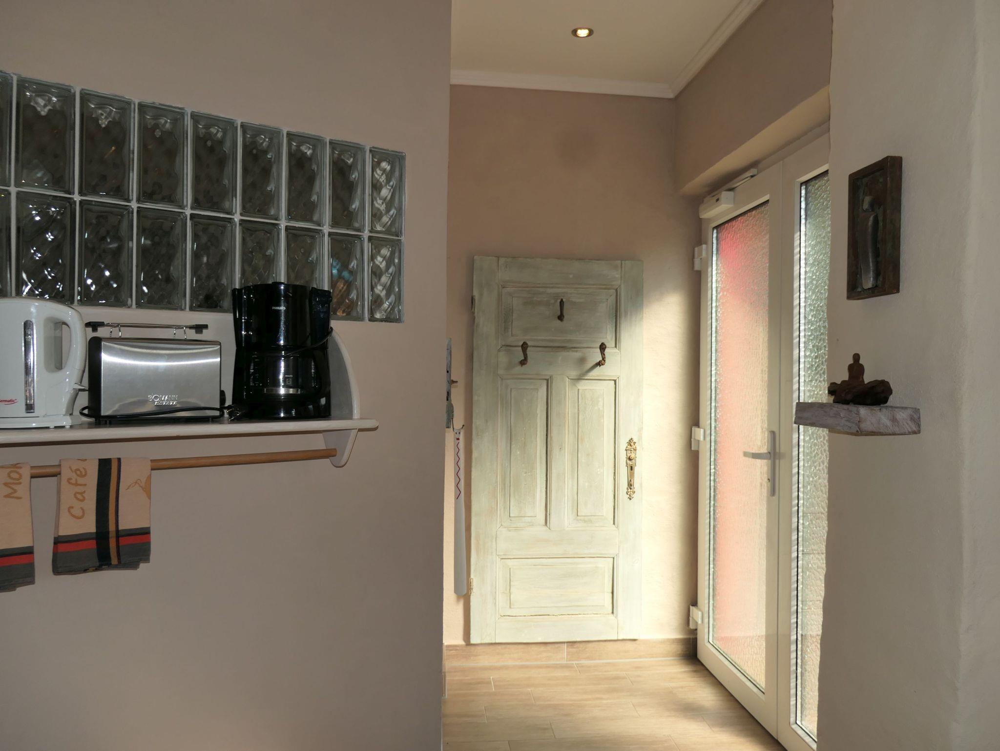 Zu jeder Wohnung gehört eine Außenterrasse mit Gartenmöbeln, Sonnenschirm und Grillmöglichkeit. Darüber hinaus finden Sie bei uns einen großen Natur- und Nutzgarten, in dem Sie neben vielfältig angelegten Beeten auch noch Wegrandblumen und Heilpflanzen sowie verschiedene Ruhezonen mit Sitzgruppen und Liegen zum Entspannen finden. Manchmal ganz offensichtlich, bisweilen recht versteckt können Sie im Garten Kunstobjekte des Hausherren entdecken und bei Gefallen käuflich erwerben.