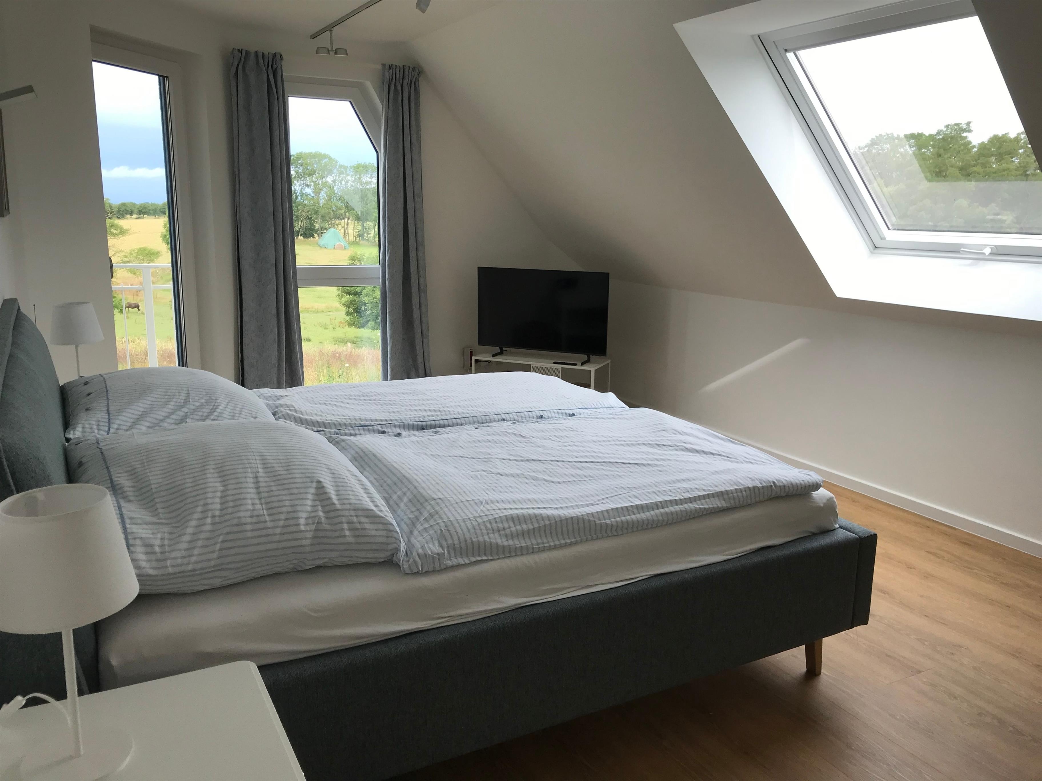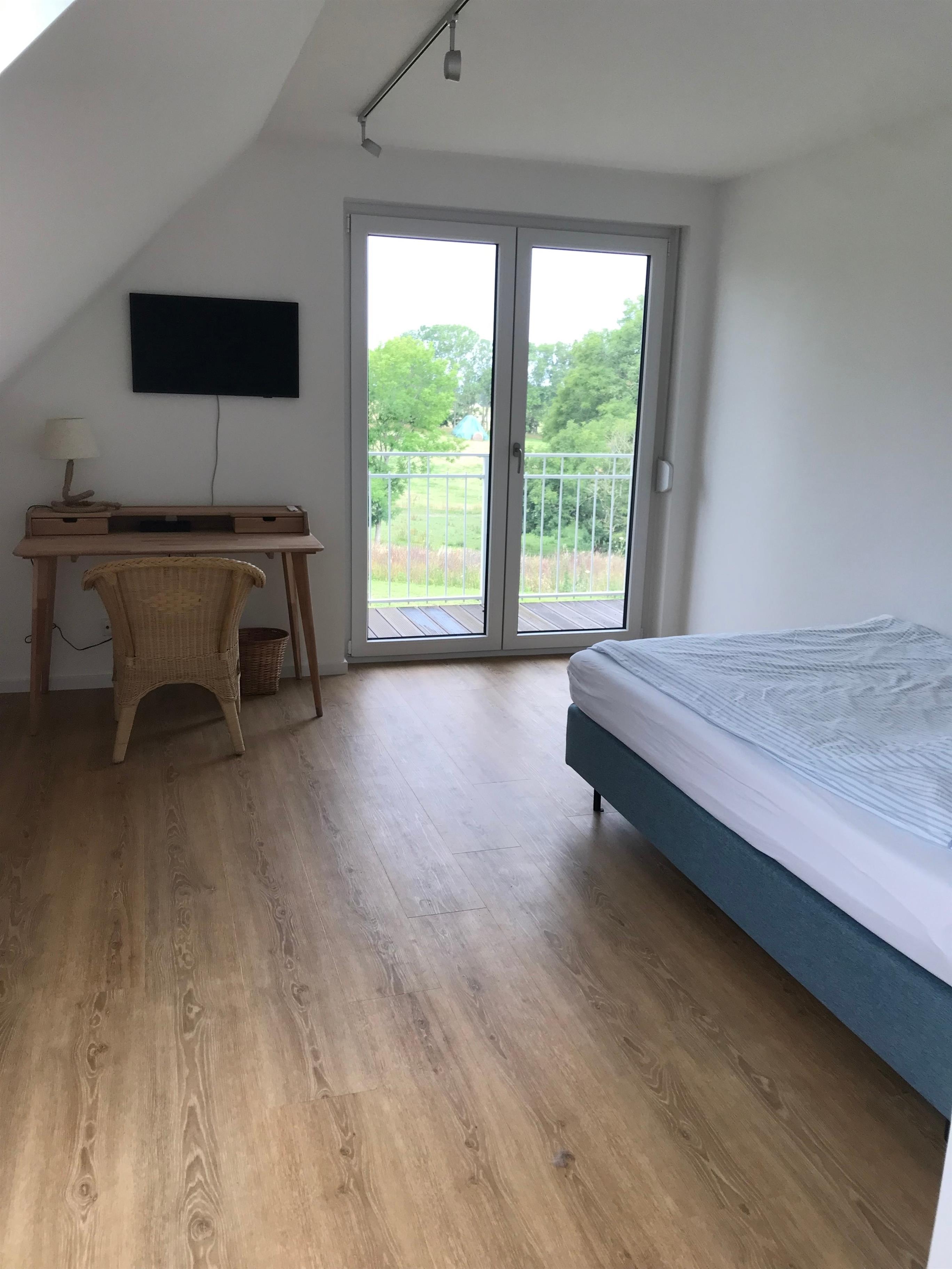 Für eine besonders erholsame Nachtruhe können alle Räume durch Rolläden abgedunkelt werden und vor oder nach dem Schlaf ist vom Balkon der beiden oberen Schlafzimmer aus der Weitblick mit faszinierendem Sonnenuntergang zu genießen. In den frühen Morgenstunden sind häufig interessante Wildtiere wie Fuchs, Wildkatze, Rehe und (mitunter weiße) Hirsche zu beobachten, im Frühjahr und Herbst verweilen Kraniche und Wildgänse auf den Feldern.