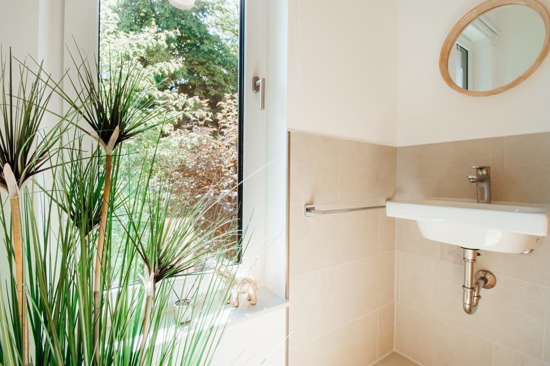 Im offen gestalteten Wohn-Essbereich genießt du lichtdurchflutete Räume mit bodentiefen Fenstern und direktem Zugang zur Terrasse und dem großen Garten. Das hochwertige Schlafsofa bietet zusätzlichen Schlafplatz für bis zu zwei Personen. Die voll ausgestattete Küche mit Essbereich lädt zu gemeinsamen Mahlzeiten ein – ob Frühstück in der Morgensonne oder ein Glas Wein am Abend.