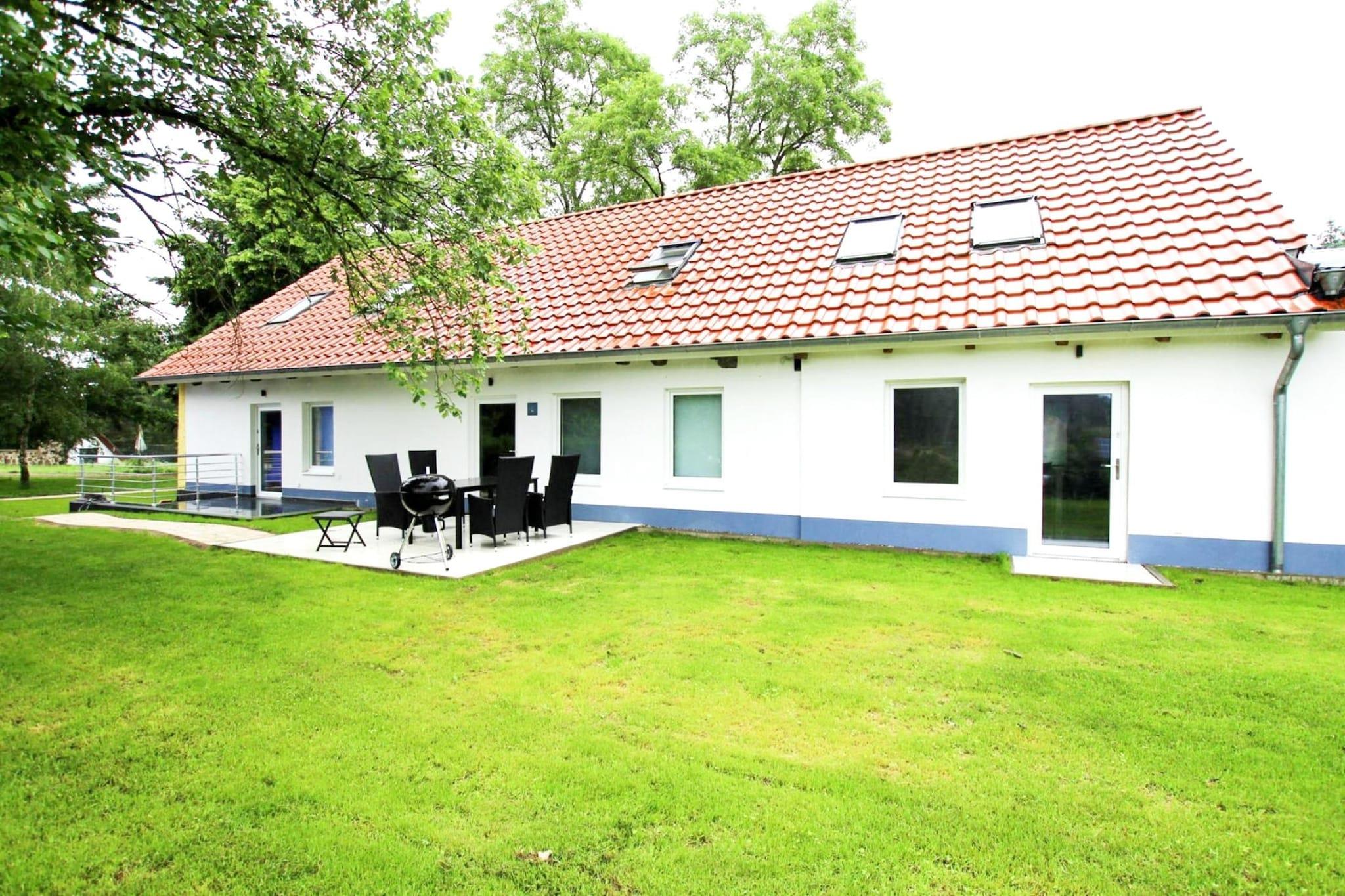 Lyse og venlige rækkehuse i to etager med egen terrasse, havemøbler og grill på en halvø i Haveområdet. Boligerne er indrettet på en moderne måde. De ligger midt i det smukke Dobbertiner-sølandskab med skove, enge og talrige idylliske vandområder. Den nærmeste sø er Gardersee, som kun ligger 300 meter væk, så du spontant kan tage en forfriskende dukkert eller tilbringe nogle afslappende timer med at fiske. Unge og gamle (mod betaling) kan forbedre deres kørefærdigheder på den tilstødende rideeng. Lohmen ligger kun en kort køretur fra Güstrow, men du kan også udforske byer som Wismar, Rostock eller Schwerin herfra på en spændende dagstur. Detaljer: forbrugsbaserede energiomkostninger, sengelinned, håndklæder, slutrengøring Aktiviteter i nærheden: I Güstrow, 17 kilometer væk, imponerer den gamle bydel med smukke bindingsværkshuse og udfordrende murstensgotik, såvel som imponerende palæer, renæssancebygninger og det klassicistiske rådhus. Især slottet fra 1500-tallet giver byen sin charme, da det er en af de smukkeste renæssancebygninger i Nordtyskland. Bymuseet, talrige gallerier, smukke caféer og skjulte baghaver gør din dag ude til en vidunderlig kulturel oplevelse Ikke egnet til personer med nedsat mobilitet