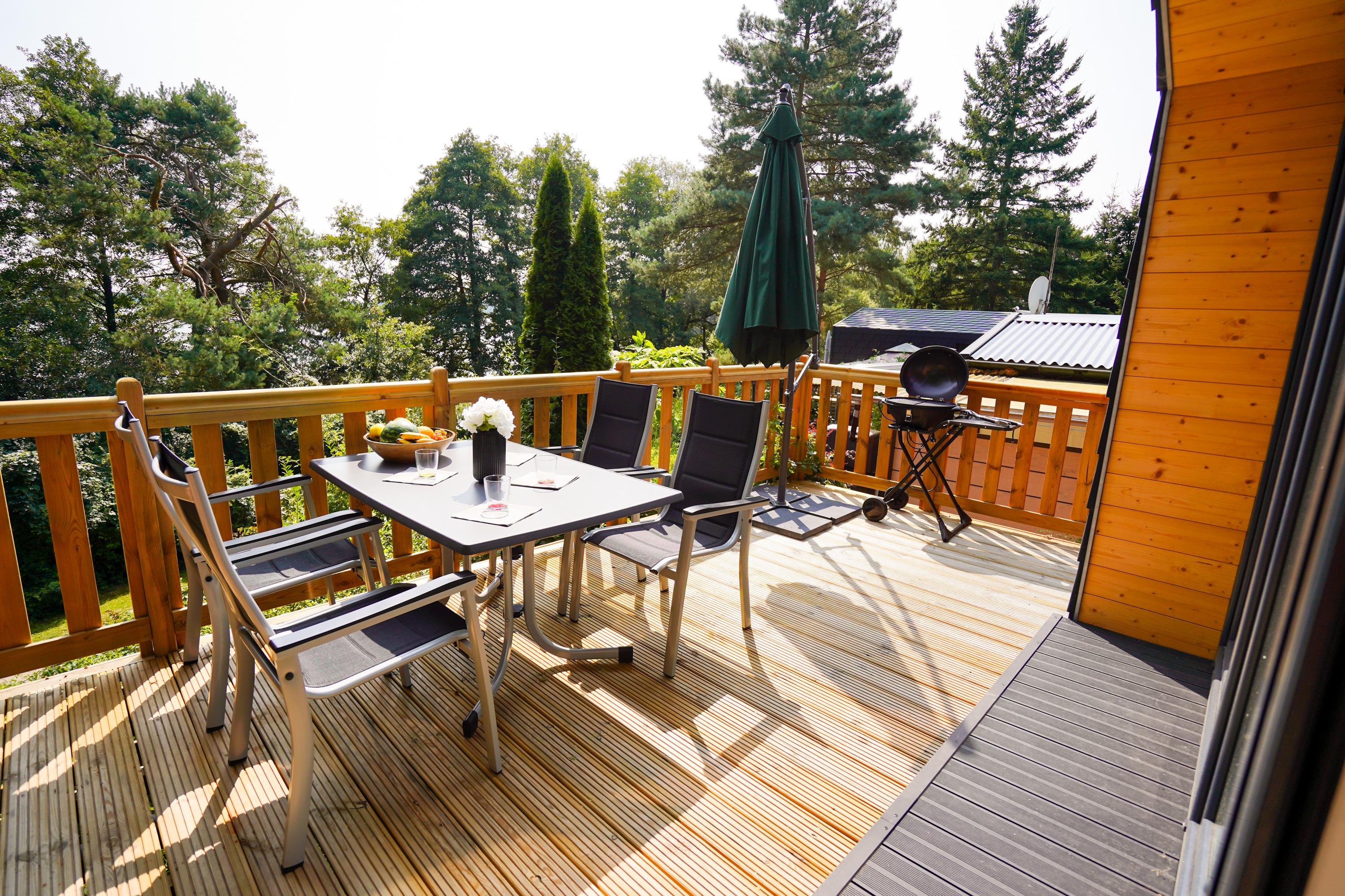 Sie wünschen sich eine gehobene Unterkunft in direkter Natur ? Dann sind Sie bei uns auf dem Campingplatz genau richtig . Dieses luxuriöse Haus liegt auf einer Anhöhe und ist nur wenige Schritte vom See entfernt. Der Wald grenzt direkt an den See . Die Natur läd zu ausgiebigen Spaziergängen und verweilen ein. Der See hat eine hervorragende Wasserqualität und ist zum Baden und auch für Wassersport sehr gut geeignet. Boote und SUP können an der Rezeption geliehen werden. In der kühlen Saison ist eine Sauna mietbar.