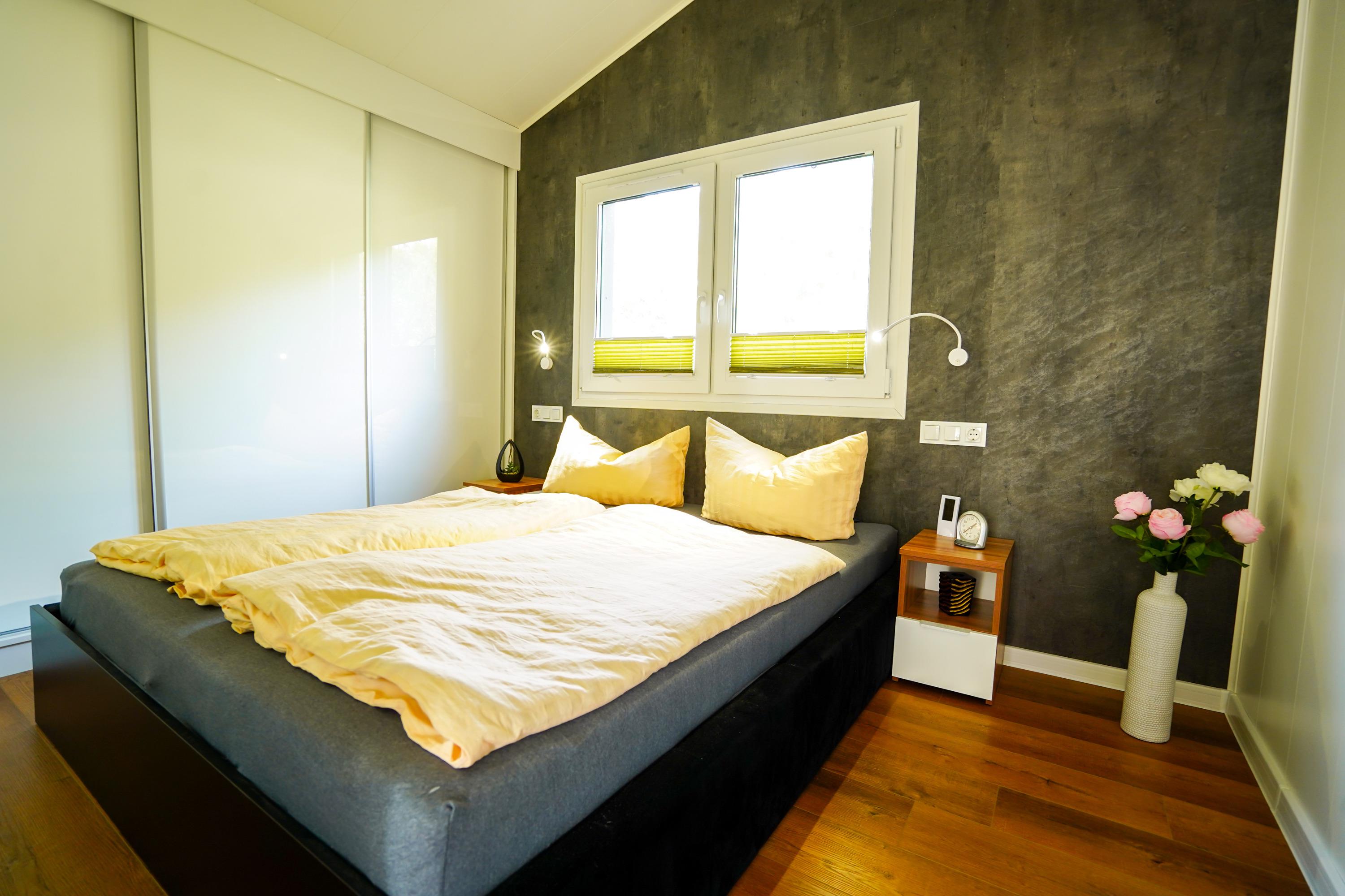 Das großzügige Haus mit mit zwei Schlafzimmern ausgestattet. Von der geräumigen Wohn -und Essküche blicken Sie auf die Terrasse , die dem See zugewendet ist. Das Bad ist mit WC und Dusche ausgestattet.
