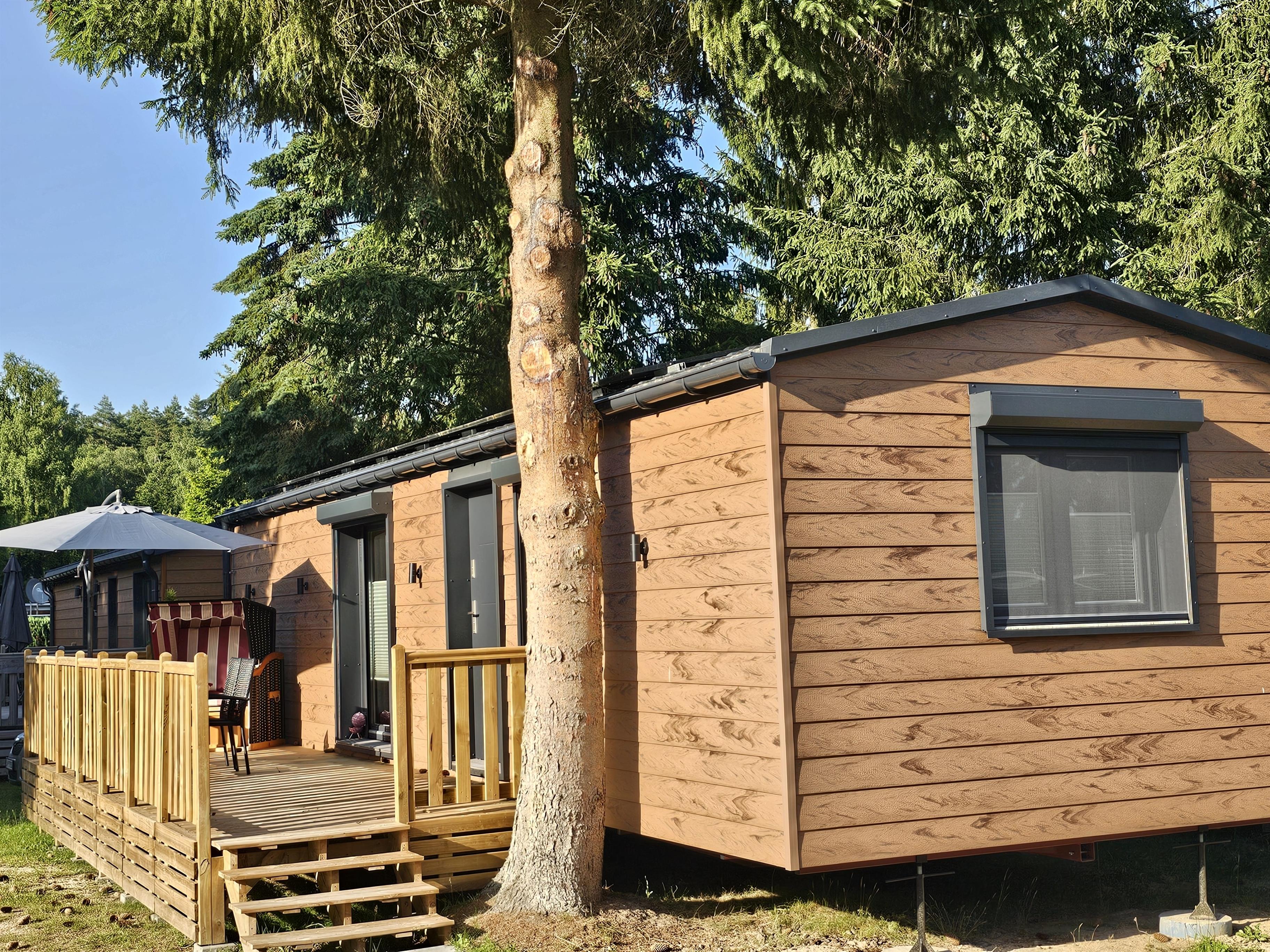 Unser gemütliches Mobilheim ist erst seit Juni 2025 in der Vermietung.Es steht zentral auf dem Campingplatz, in der Nähe der Rezeption. Der See ist nur wenige Schritte entfernt.