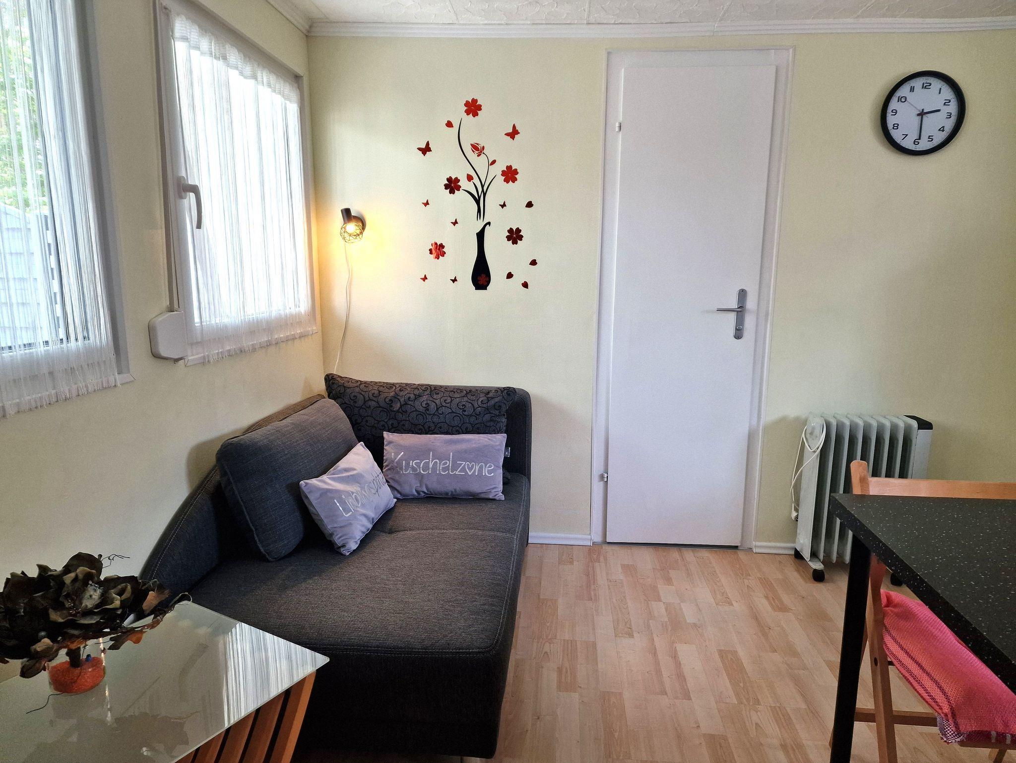 Der kleine Bungalow wurde im Jahr 2022 komplett neu renoviert und befindet sich an einem ruhigen Waldrand. Zum Bungalow gehört eine geflieste Terrasse, die zur Hälfte überdacht ist. Weiterhin finden Gäste für gemütliche Stunden auf der Terrasse diverse Gartenmöbel vor. Auf Anfrage ist die Bereitstellung von einem Grill sowie Ventilator an warmen Tagen möglich. Das kleine Grundstück können Gäste abschließen und auch mitgebrachte Fahrräder finden auf dem Gelände Platz. Ein PKW Stellplatz befindet sich unmittelbar vor der Unterkunft.