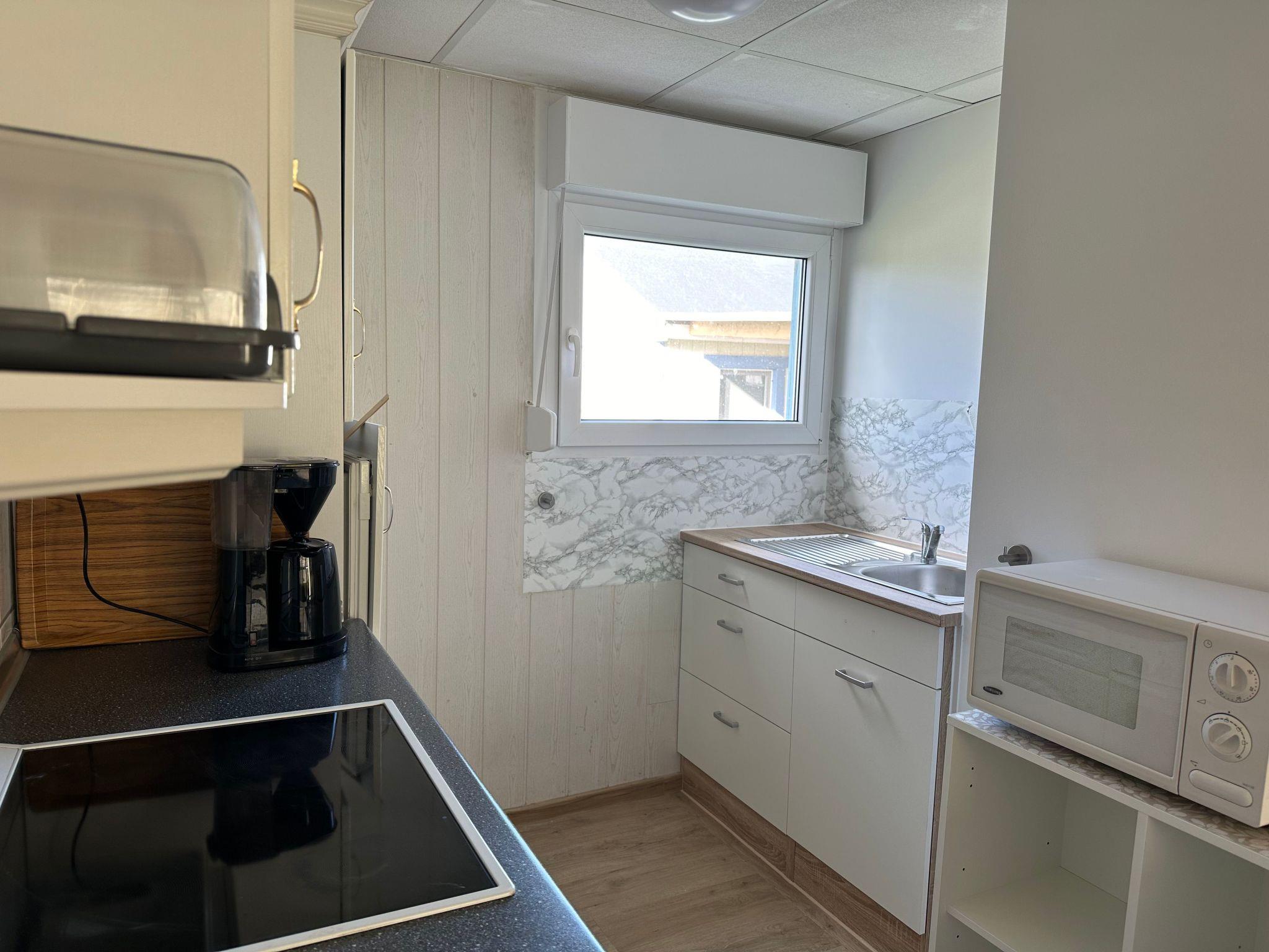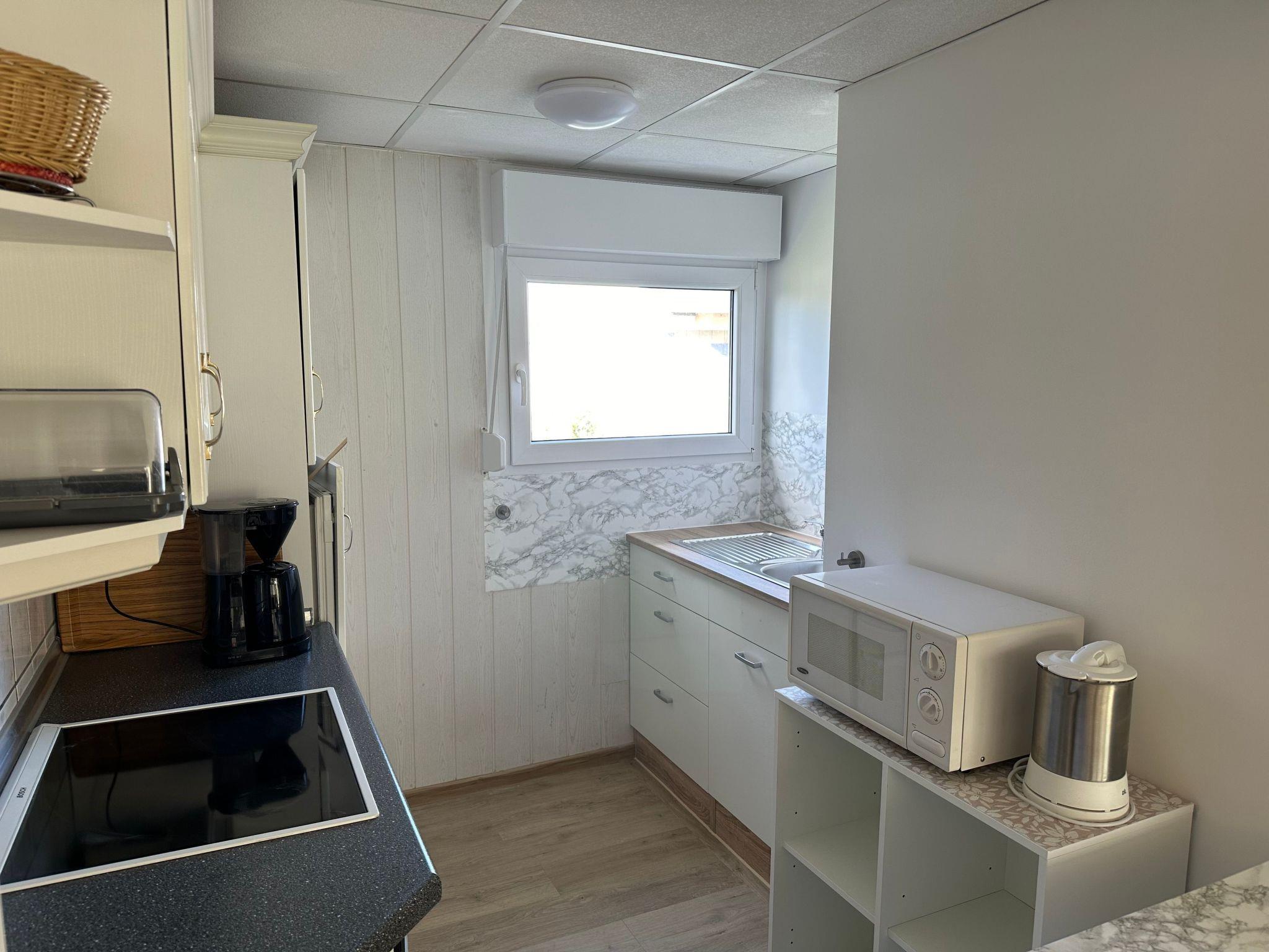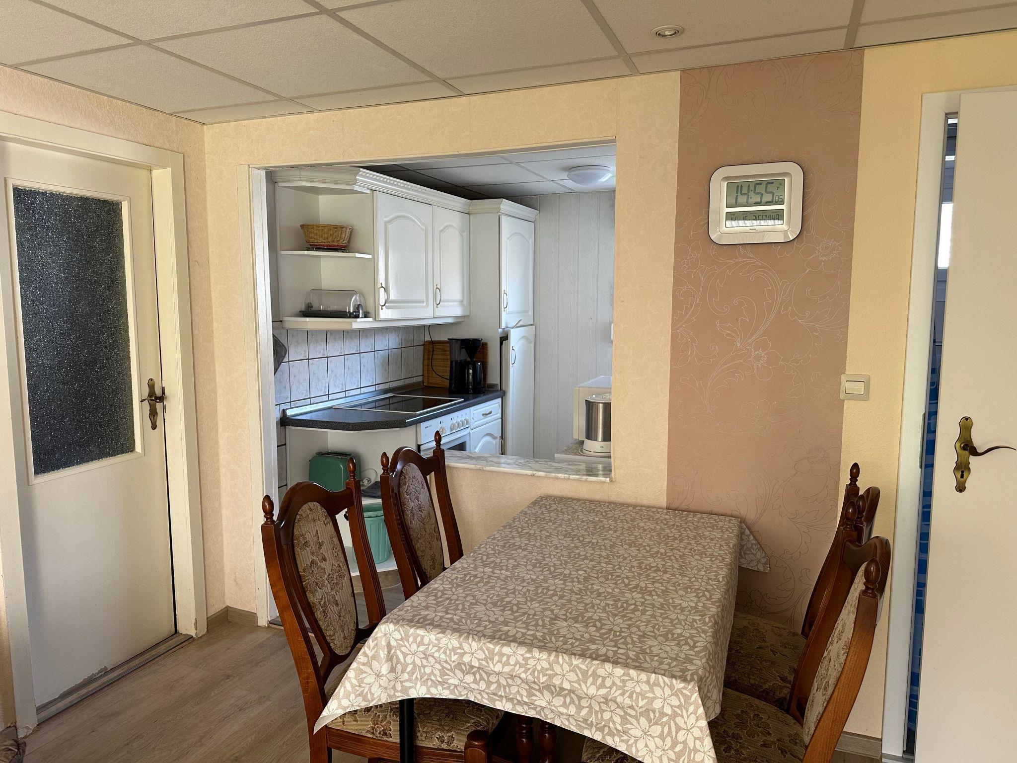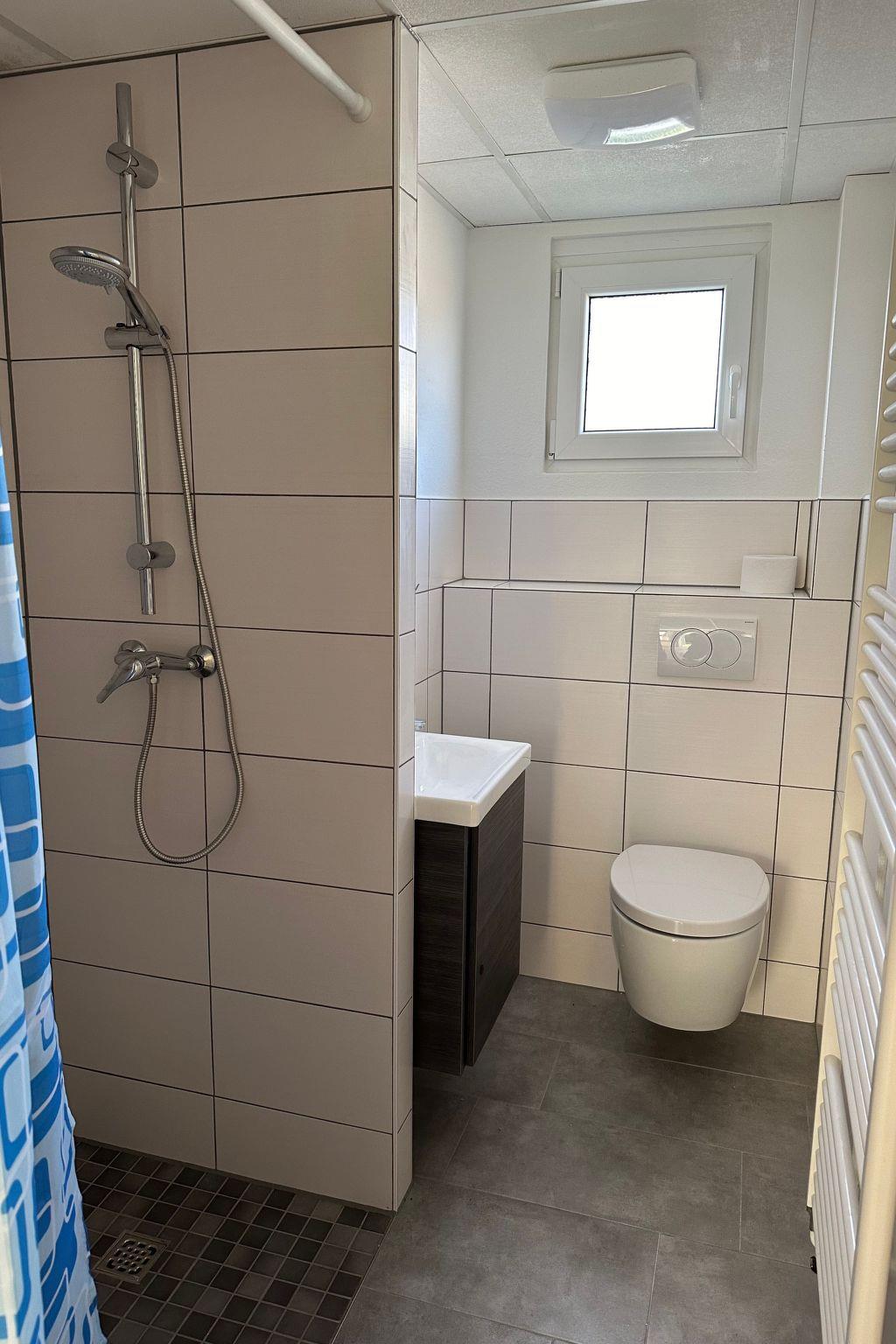 The holiday home has two cosy, darkened bedrooms that invite you to relax after an eventful day. The well-equipped kitchen with ceramic hob, filter coffee machine and kettle and the modern bathroom with shower provide additional comfort. Thanks to the solar-assisted heating system, you can enjoy a pleasant indoor climate even in the cooler months.