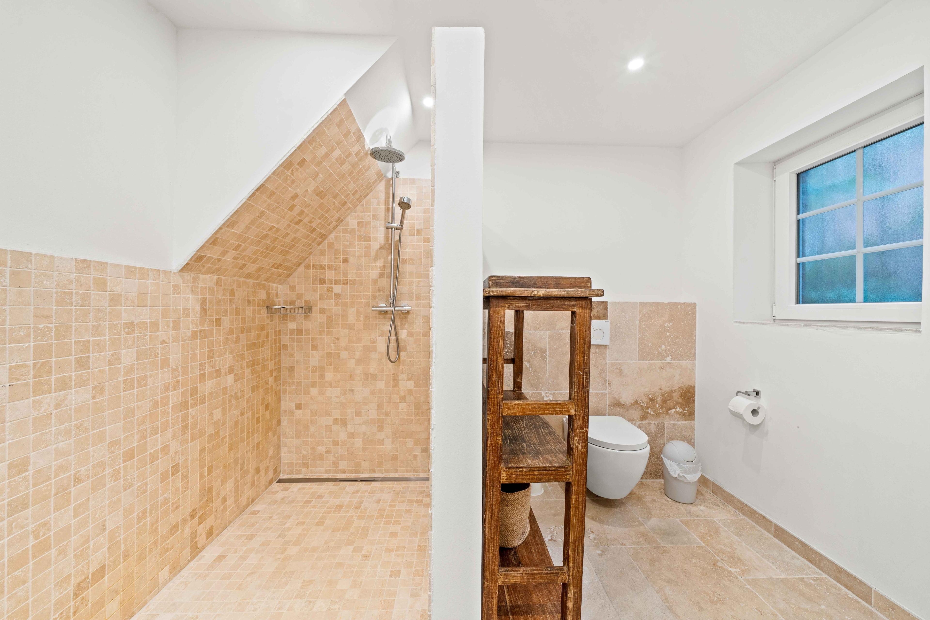 Badeværelse med bruser og badekar