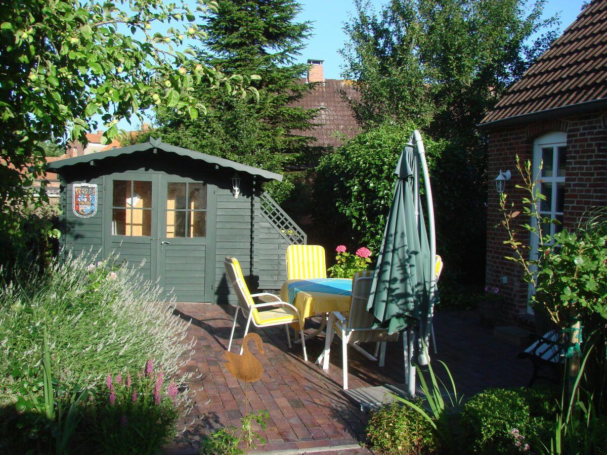 Die Terrasse lädt zum Relaxen und Verweilen ein. Im Garten befindet sich auch eine Saunahütte. Entspannen Sie hier nach einem langen Deichspaziergang. WLAN ist verfügbar! Ein Parkplatz befindet sich direkt vor dem Haus.