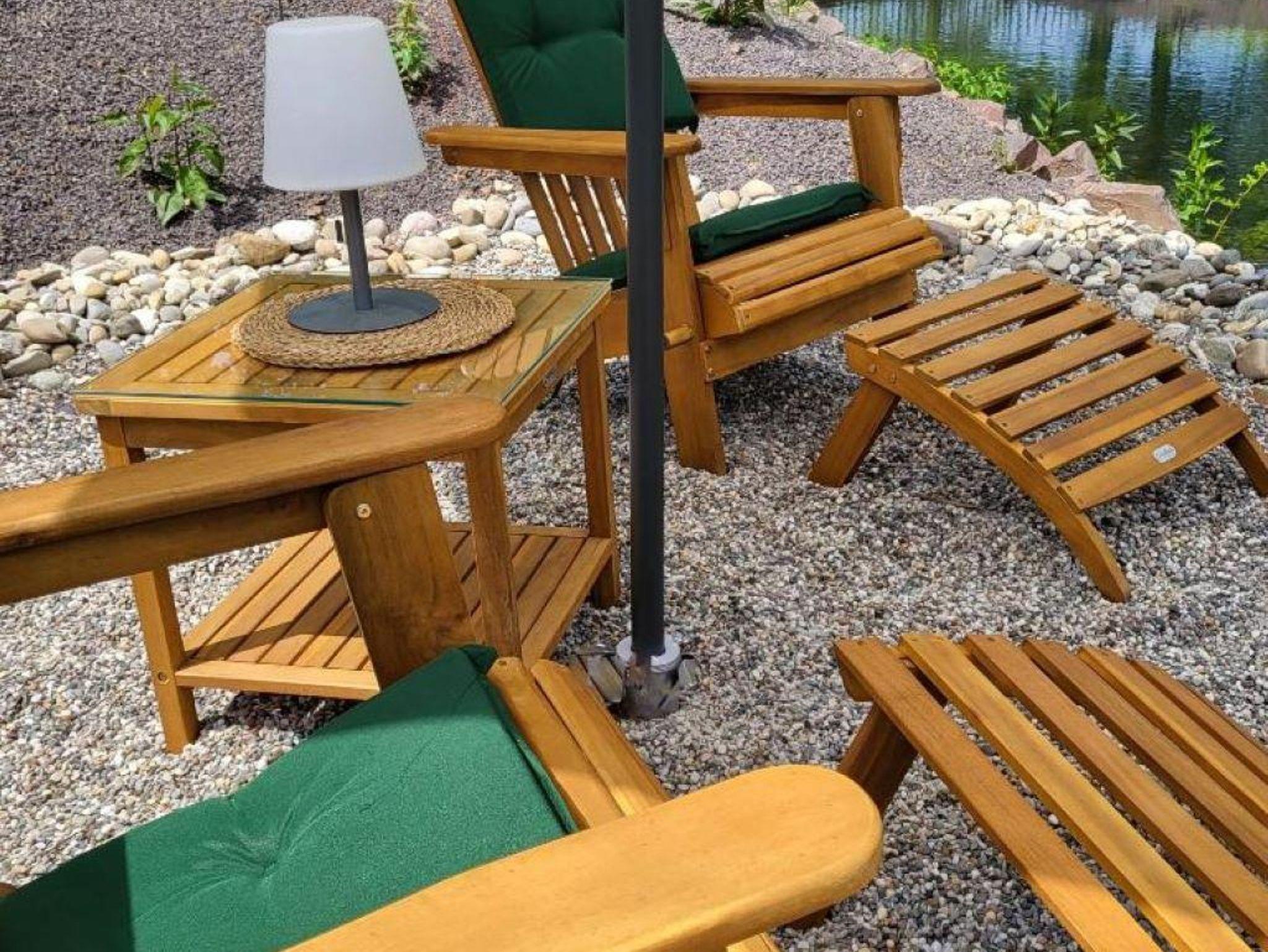 Unsere Ferienwohnung Teichblick ist 53m² groß und bietet 1-2 Personen ausreichend Platz für einen angenehmen Aufenthalt. Die Wohnung befindet sich im Erdgeschoss und verfügt über einen Wohn- Essbereich mit integrierter Küche, einem Schlafzimmer (Doppelbett:180cmx200cm) und einem Badezimmer. Vom Schlafzimmer hat man den direkten Zugang zur überdachten Terrasse und zum Wellness-Garten.