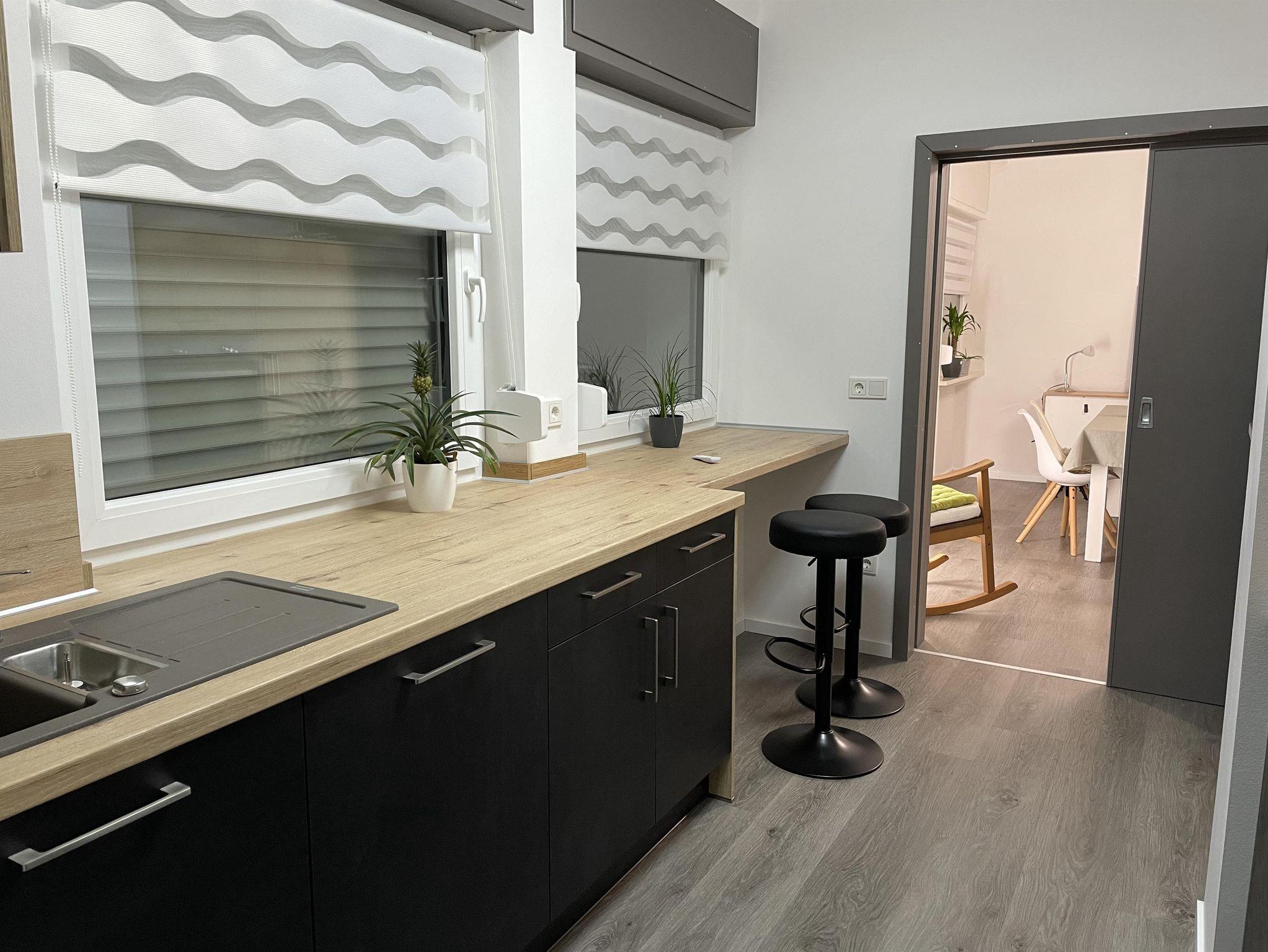 Die ans Esszimmer angrenzende Küche wurde erst Mitte März 2024 fertiggestellt und ist komplett neu und lässt absolut keine Wünsche offen. Sie ist mit Schiebetür zu schließen und umfasst folgende Einrichtungsgegenstände: