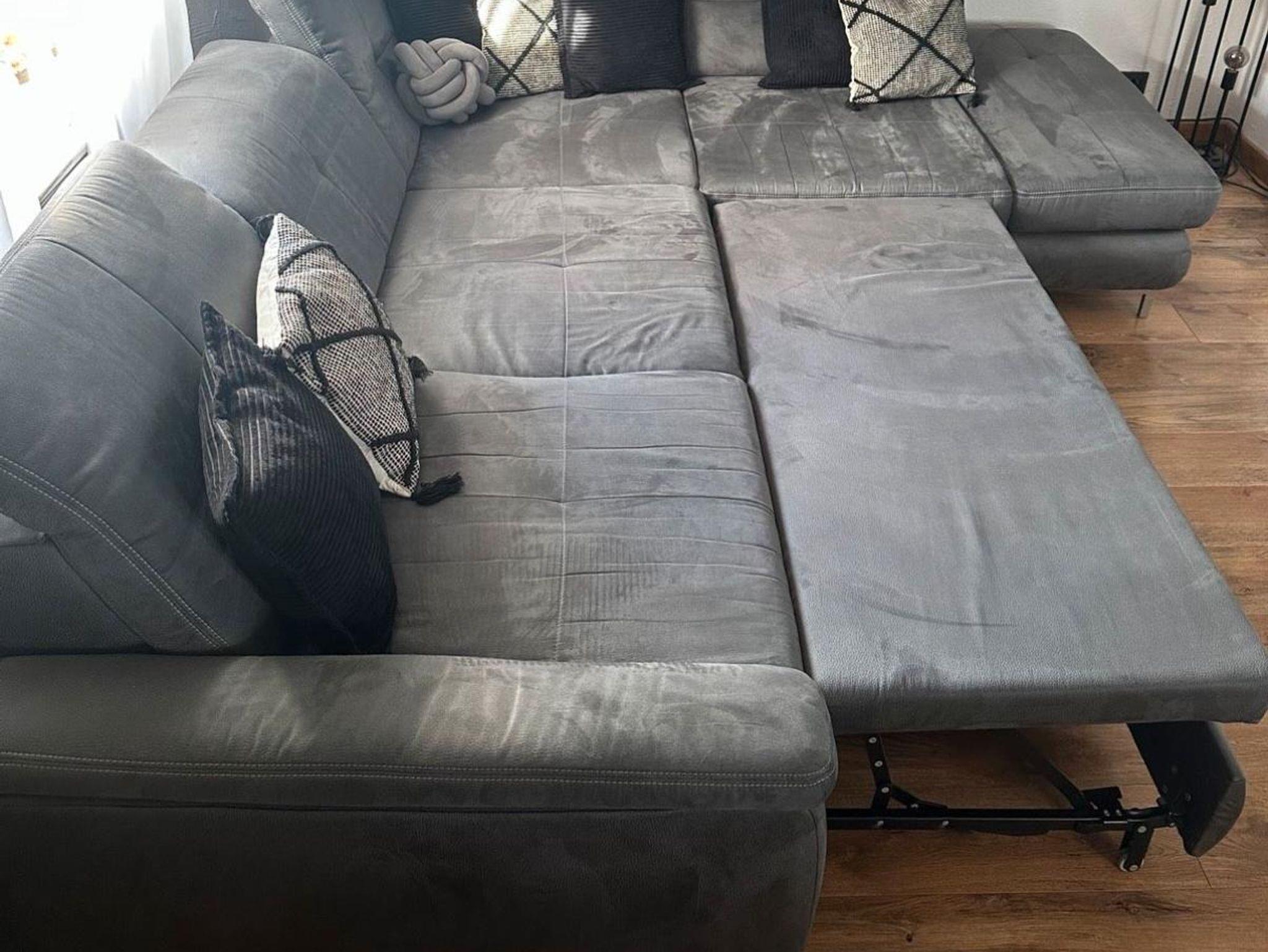 Das große, modern und gemütlich eingerichtete Wohnzimmer mit ausziehbarer Eck-Schlafcouch und separatem Schlafsofa sowie Flachbild-TV lädt zum Verweilen und Chillen ein. Von hier aus ist der direkte Zugang zu Terrasse und Garten möglich.