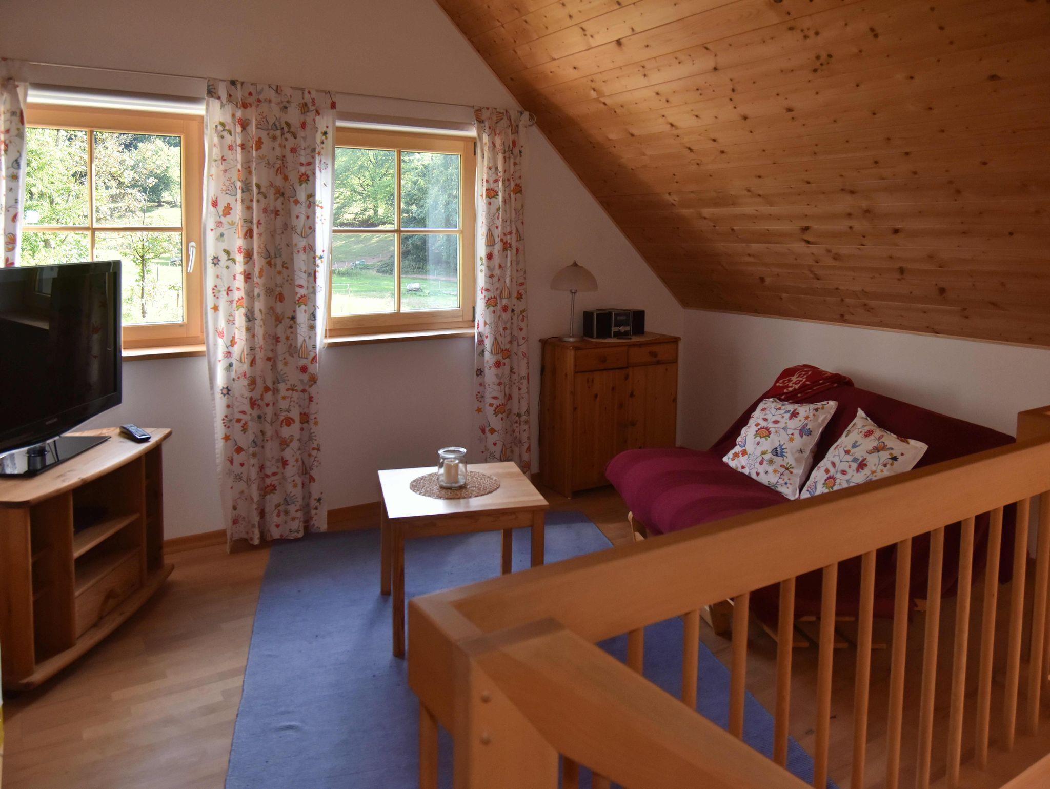 Jedes Ferienhaus ist mit einer Wohnfläche von 85qm für 4 Personen mit 4 Sternen zertifiziert. Wir bieten Ihnen Wohlbefinden und Landhausflair durch bodentiefe Fenster, Pelletofen, geölte Holzdielen, geschmackvollen Vollholzmöbel und Holzdecken. Genießen Sie Ihre Privatsphäre im Haus für sich allein mit eigenem sonnigen Garten mit Weitblick ins Tal und auf grasende Pferde. Auch im Eingangsbereich ist Ihr Haus durch Pflanzgitter von den anderen optisch abgetrennt. Die Allergiker gerechte Ökobauweise sorgt für ein gesundes Wohlfühlklima.