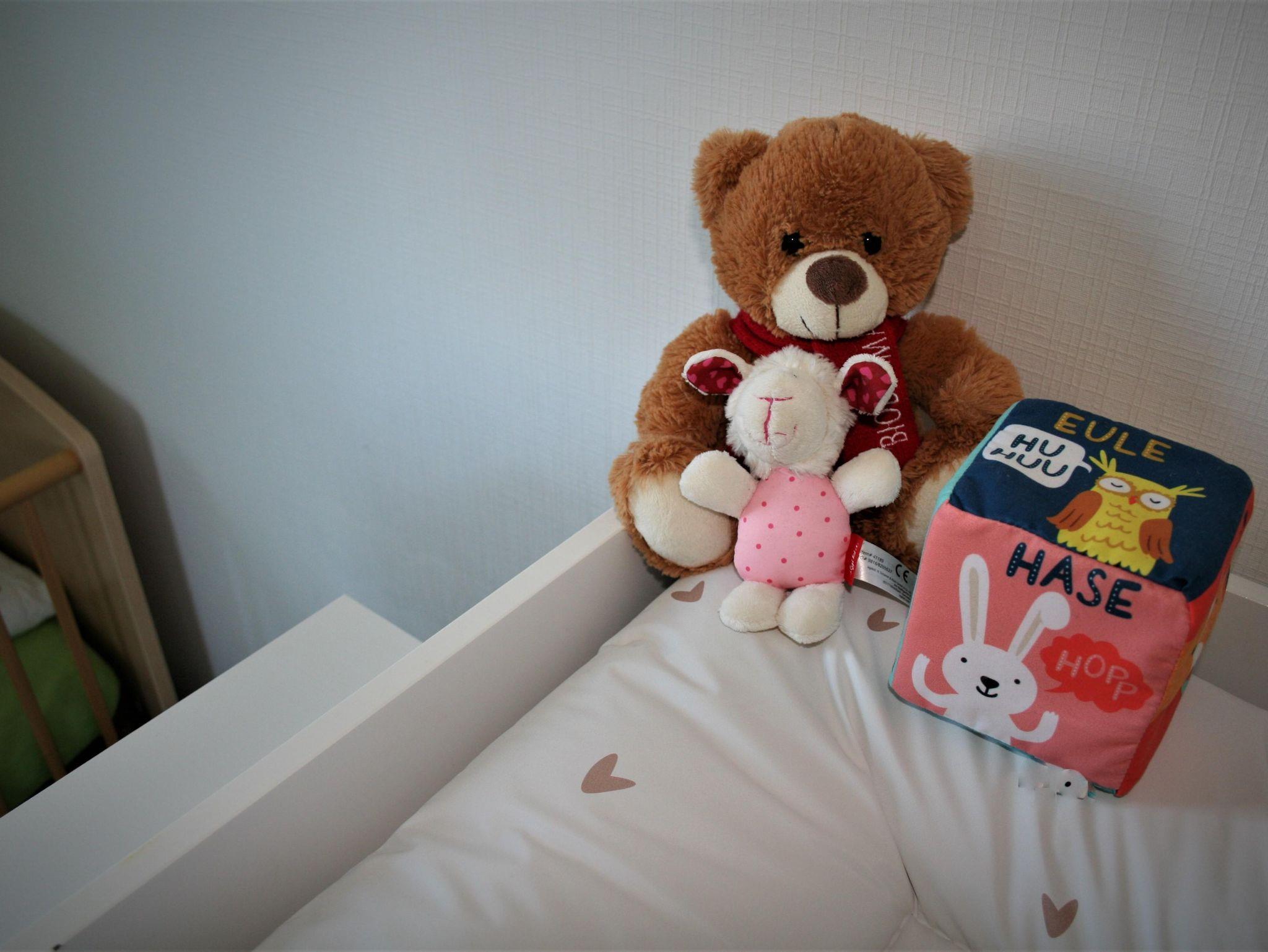 Das 130 m²-große Appartement befindet sich auf nur einer Ebene und verfügt über drei Schlafzimmern, von denen zwei Schlafzimmer mit einem Doppelbett und eines mit einem Etagenbett ausgestattet sind. Zusätzlich stellen wir Ihnen gerne ein Beistell- oder Gitterbett für die Kleinsten bereit.