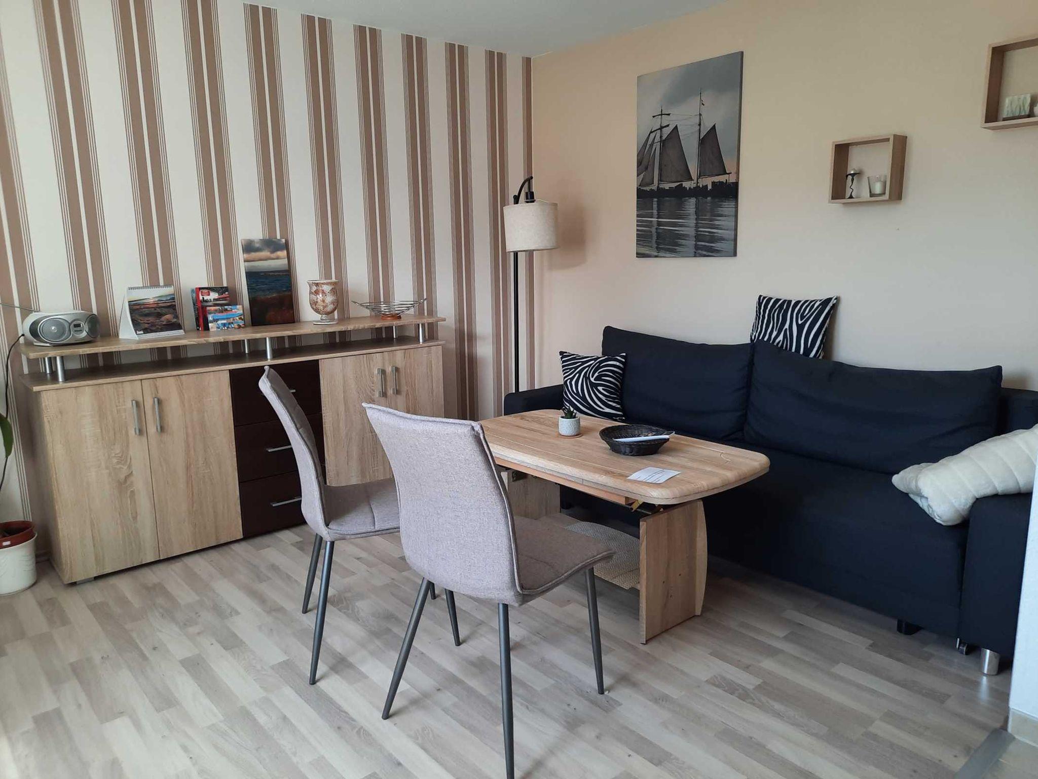 Die Ferienwohnung ist geschmackvoll und modern eingerichtet. Die Wohnung wirkt sehr hell und einladend. Auf der kleinen vorgelagerten Terrasse kann man schöne Stunden genießen. Ein zugehöriger kostenloser PKW- Stellplatz steht zur Verfügung.
