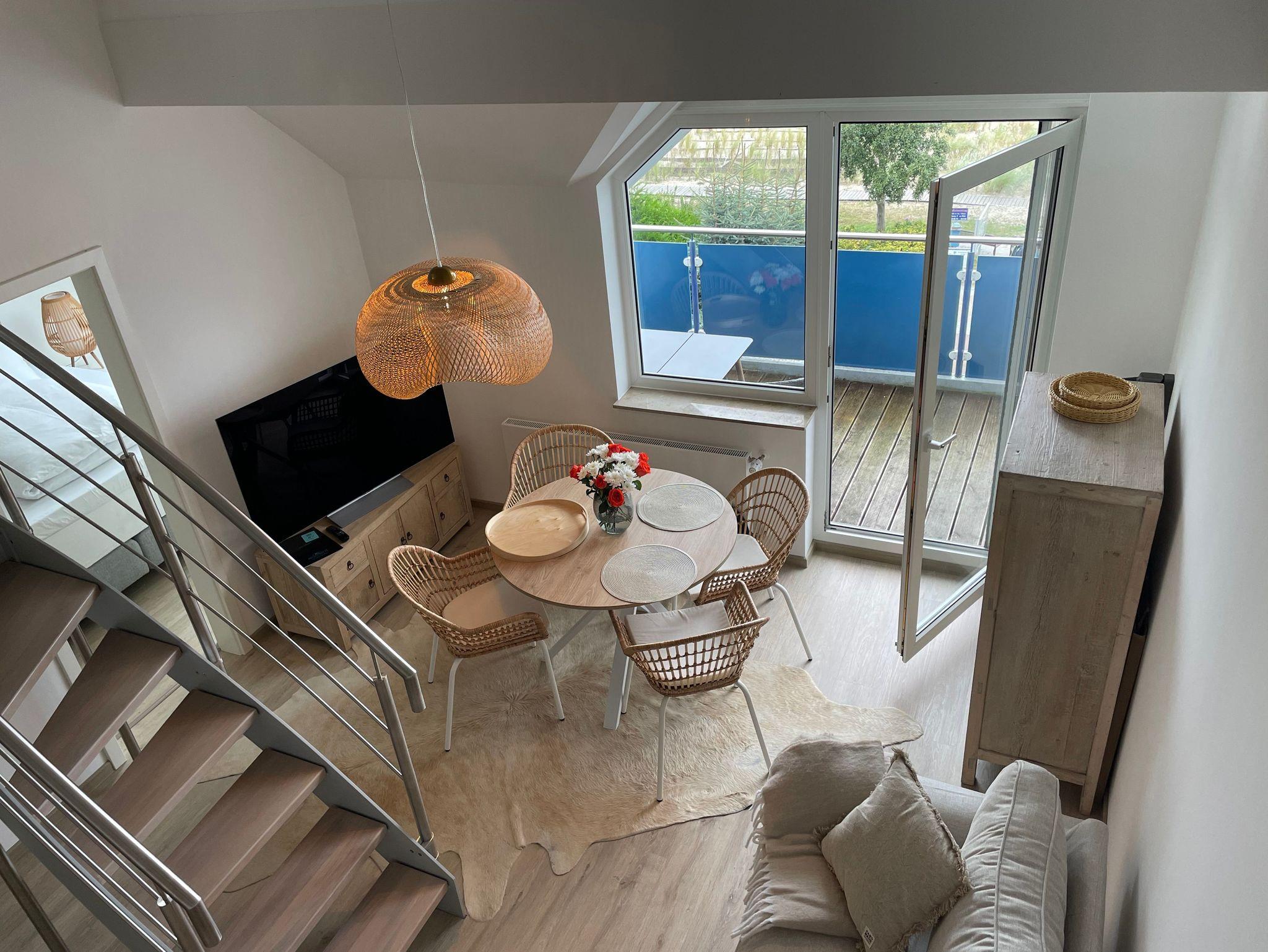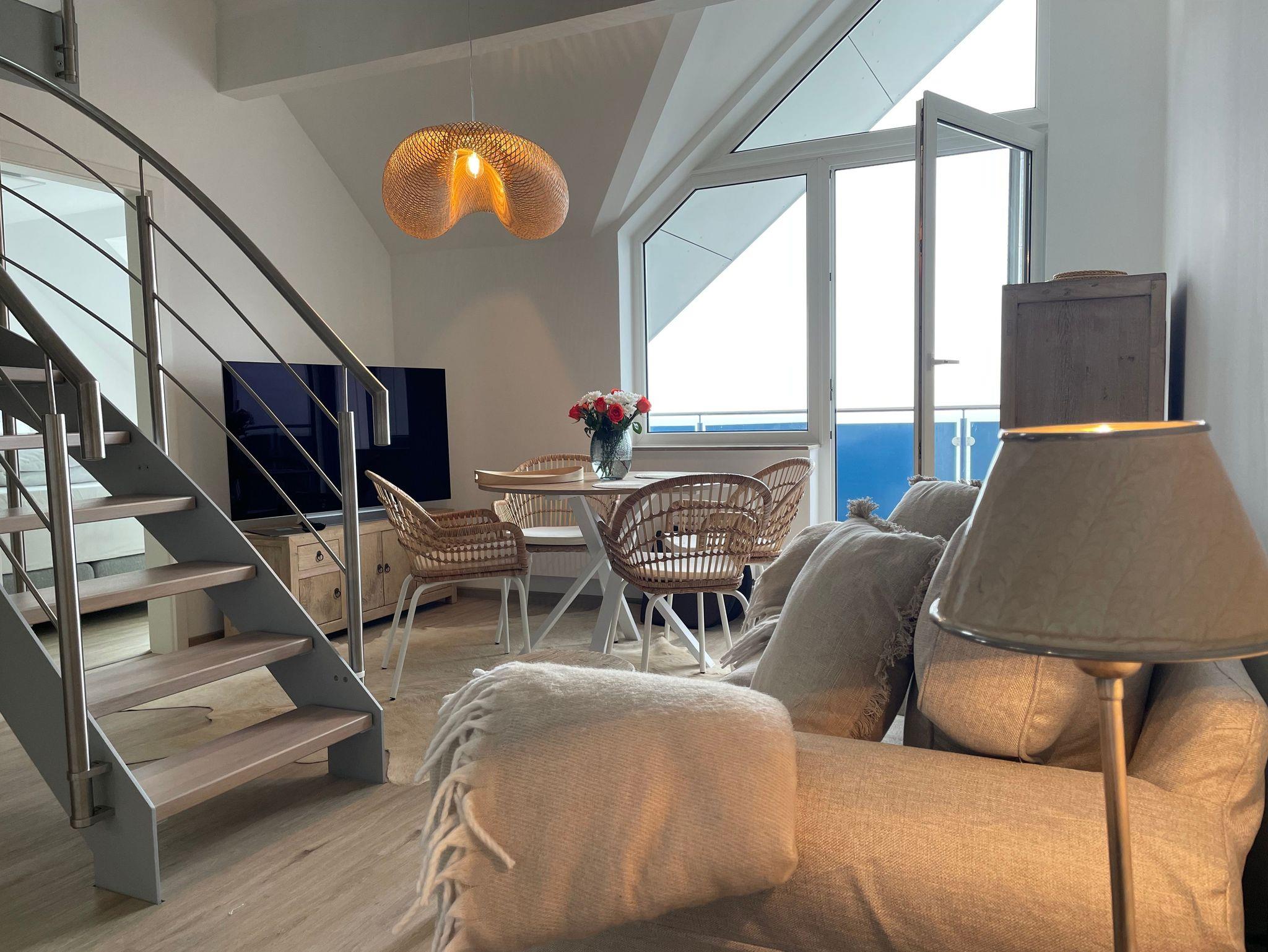 Die Loft-Suite Blaumuschel Sprotte 17 mit Meerblick im Seebad Lubmin ist hell, gross, elegant und hochwertig eingerichtet.