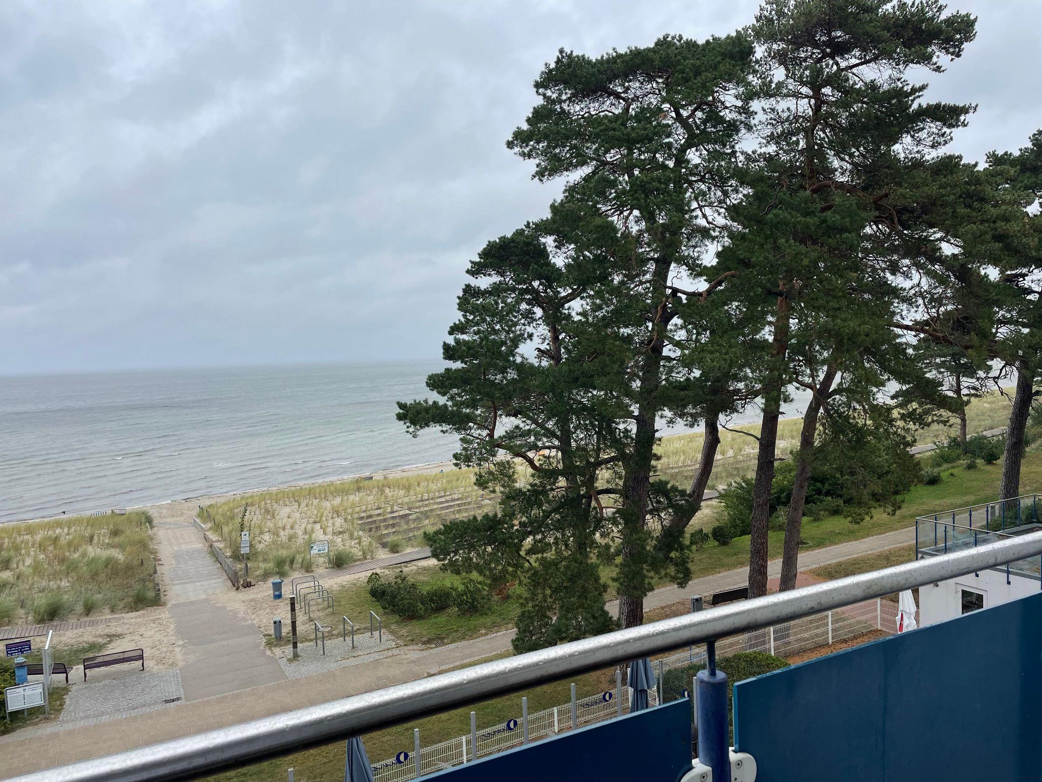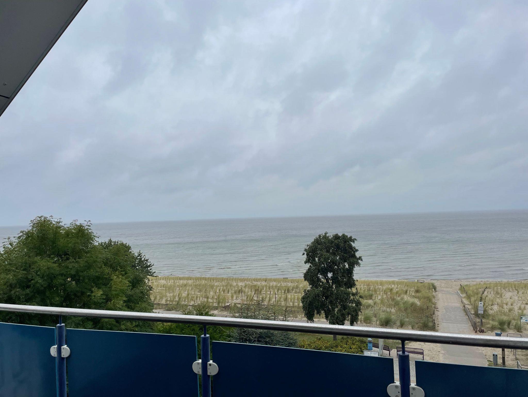 Sie befindet sich im 3. Obergeschoß. Vom Balkon mit komfortabelen Terassenmöbeln erwartet Dich ein beeindruckender Blick auf die Ostsee vor Rügen.