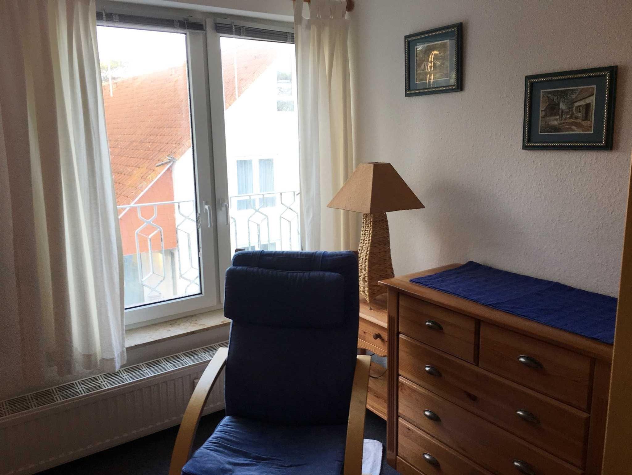 Die im zweiten Obergeschoss an der Nord- und Westseite des Hauses gelegene 64 qm große Wohnung Nr. 24 verfügt über einen geräumigen Wohnraum mit Sitzgruppe, Essplatz für bis zu 5 Personen und einer Küchenzeile (Herd mit Backofen und Ceranfeld, Mikrowelle, Kühlschrank, Geschirrspüler, Kaffeemaschine, Toaster), Bad/WC mit Badewanne, zwei Schlafzimmer ( 1 davon als Maisonette offen mit steiler Treppe ins Obergeschoss ).