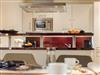 Das integrierte Wohnzimmer verfügt nicht nur über eine bequeme Couch die auch problemlos in ein Doppelbett (160x200) verwandelt werden kann, sondern auch über einen großzügigen Arbeitsbereich. Selbstverständlich finden Sie auch hier einen Plasma Bildschirm um einen spannenden Fernsehabend zu erleben. Das direkt angrenzende Esszimmer mit offener Küche verspricht wunderbar erholsame gemeinsame Abend mit Freunden und Familie.