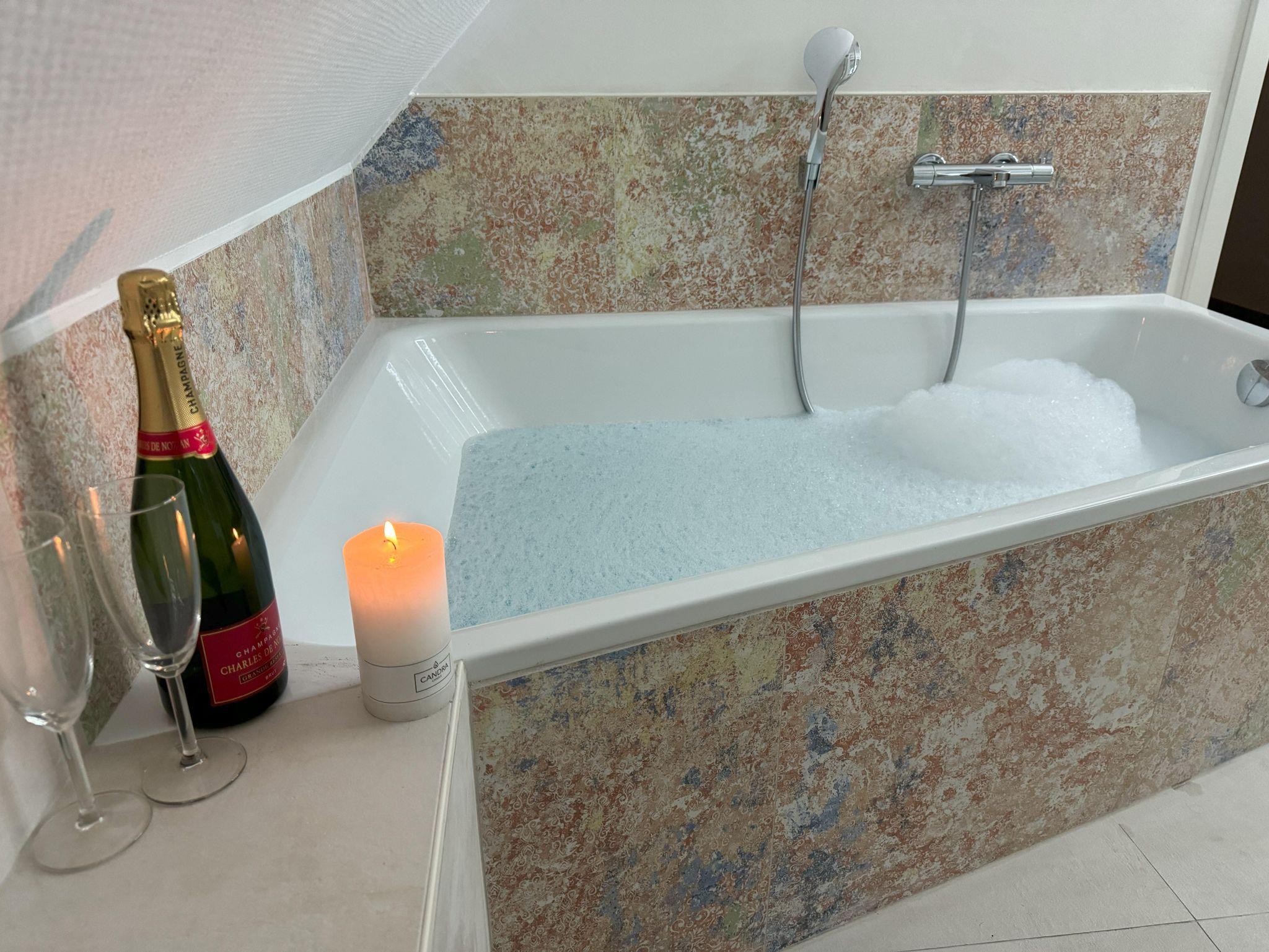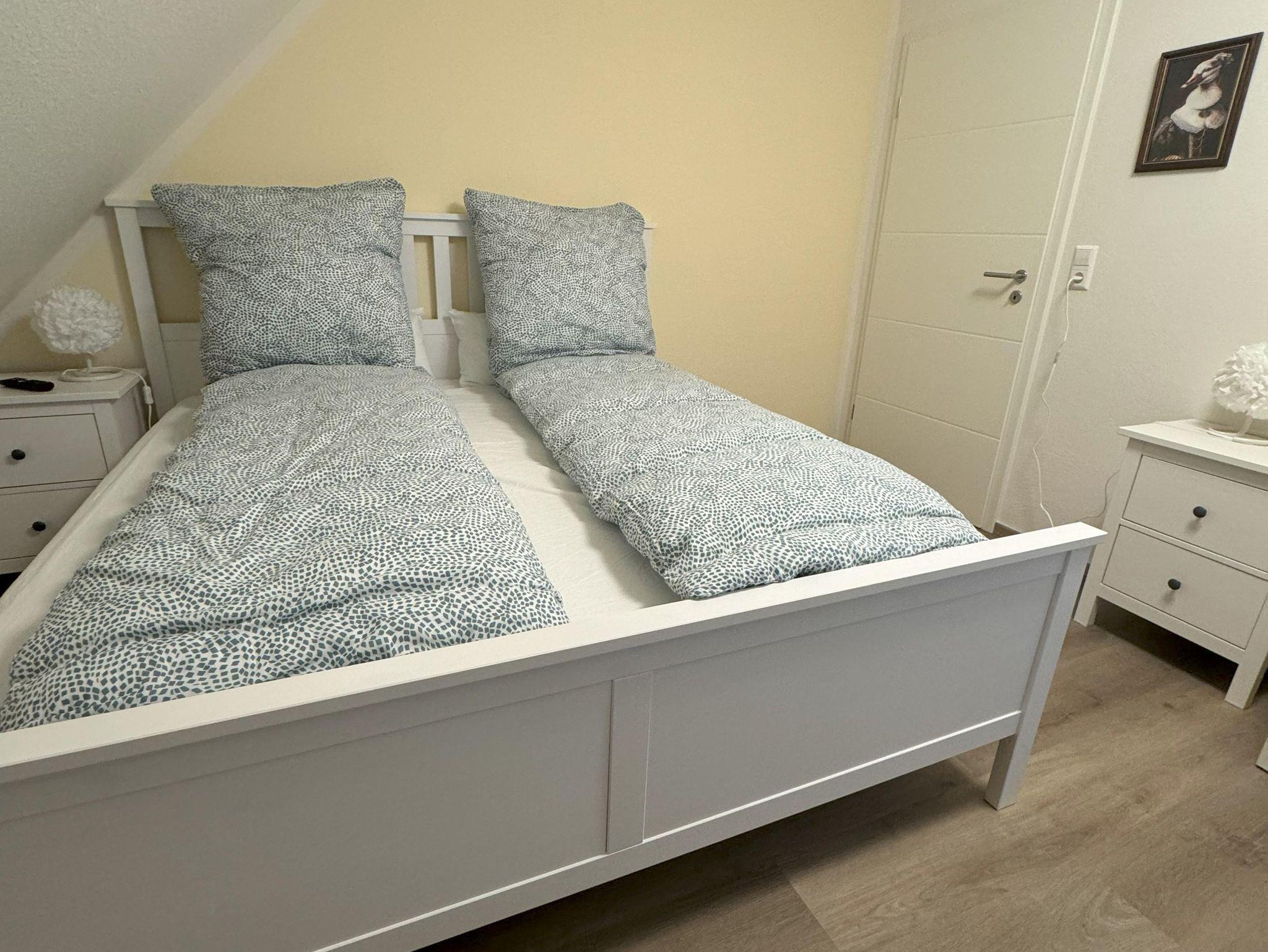 Im Obergeschoß befinden sich drei gemütliche Schlafzimmer mit Doppelbetten und Smart-TV. Das Badezimmer, eine Wohlfühloase, mit begehbarer Regendusche und großer Design-Badewanne für zwei Personen.