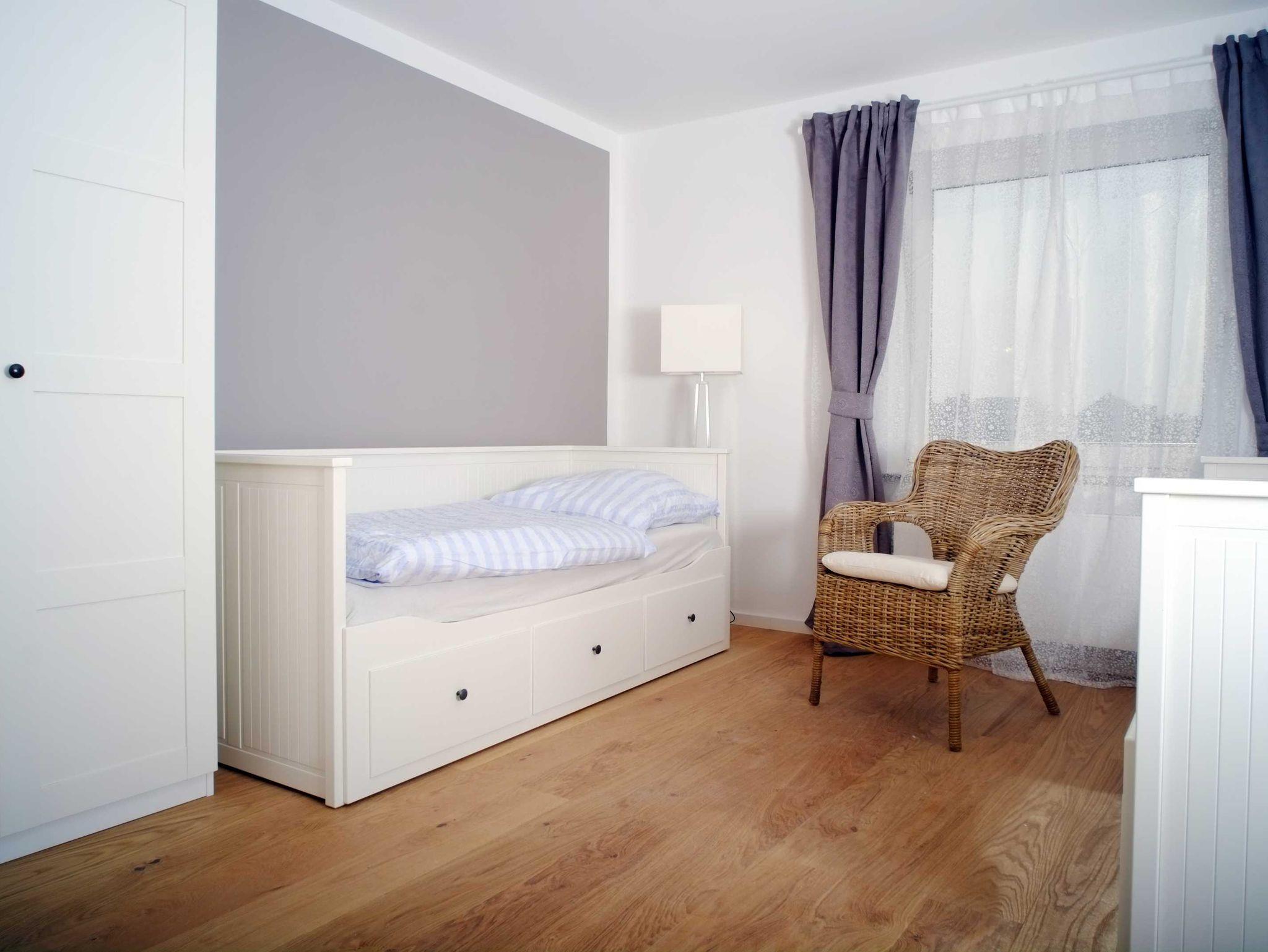 • Schlafzimmer: ein weiteres Einzelbett, welches ebenfalls zu einem Doppelbett ausziehbar ist