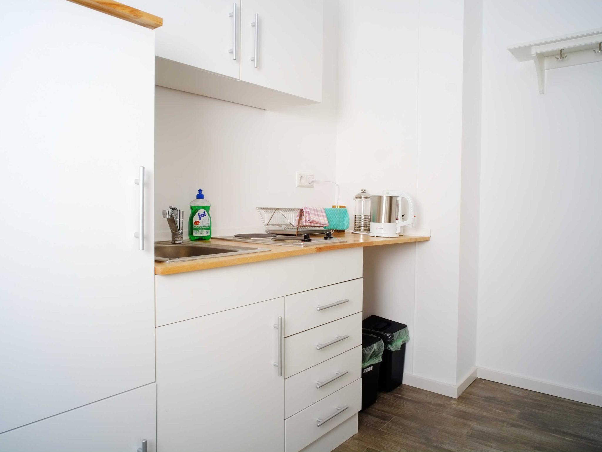 • Pantryküche auf dem Flur: 2 Kochplatten, Kühlschrank mit Gefriermöglichkeit