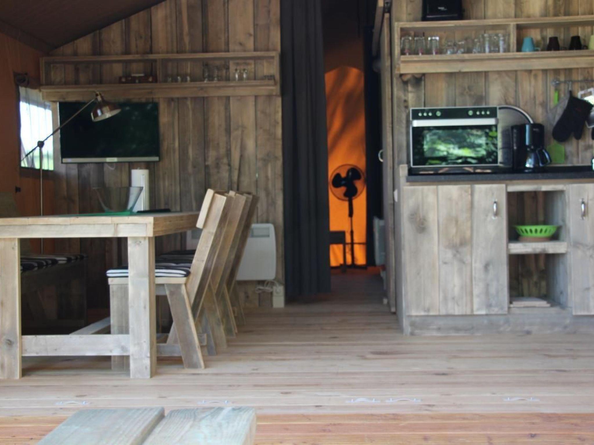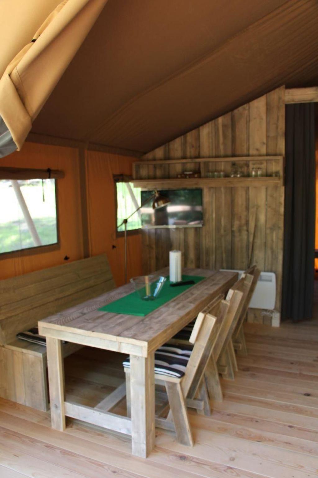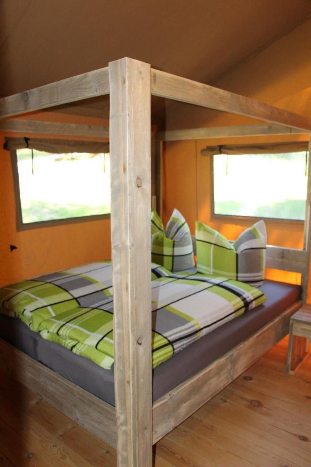 Tent lodges at the Großer Lychensee lido The tent lodges fulfil dreams! Fully equipped with kitchen, dining table, shower and cosy lounge furniture. On the terrace you can sit in the middle of nature - and almost smell the vastness of Africa.equipment: two sleeping areas, 1 double bed, 1 bunk bed and a single bed, so the tent lodge offers space for up to 5 people, Bed linen available, kitchen and household utensils, 2-zone hob, coffee machine, fridge, microwave, toaster, kettle, bathroom with shower, WC & washbasin, living area with dining table, seating area and chairs, TV, radio, satellite system, terrace, garden, lounge furniture, swimming in the lido in the immediate vicinity, minimum stay 4 days in the low season and minimum stay 7 days in the high seasonLocation: The climatic health resort and state-recognised resort of Lychen is located in the Uckermark and borders the Feldberger Seenplatte and the Havel-Wasser-Strasse. Lychen is situated between extensive forests and in the middle of an attractive lake district with access to the public waterway to the Havel waters, the "Mecklenburg Brandenburg Lake District", as well as the North and Baltic Seas. Situated on the north-western edge of the Uckermark, the small border town to Mecklenburg-Vorpommern has become a popular holiday resort. Lychen rightly has the nickname "Märkisches Interlaken", which alludes to the town's exposed island location at the Lychener Seenkreuz and the countless bodies of water in the surrounding area. Lychen rightly bears the nickname "climatic health resort", as critics can still measure and enjoy inhaling the clean air today. Situated in the middle of this charming water- and forest-rich environment, Lychen is an ideal starting point for hiking, mushroom hunting, swimming, cycling tours and boat excursions. The Woblitz river and the Himmelpforter lock provide connections to the Stolpsee lake and the Havel waterway. To the south of the town is an extensive wooded area that extends far beyond the Havel and Bredereiche. This area, like the northern wide forest area up to Feldberg, is intended for nature conservation. The medieval town lies between Templin or Prenzlau and Fürstenberg or Feldberg in Mecklenburg-Western Pomerania. Lychen is an up-and-coming spa and tourist town with no industry, but is open to crafts and service providers. Enterprises that do not harm the natural resources, but are dependent on them, such as the Flöser, the Draisienenlinie are supported by the city fathers! Lychen is also connected to the public network of regular bus lines.Brief descriptionOther : Non-smoking houseShort description 1Number of kitchens : 1Living room 1Other living room facilities : Safari tent tent lodgeSurroundingsLeisure facilities : Boat hire, bicycle hireSports facilities in the surrounding area : Fishing, canoeing, cycling, riding arena / riding facilities, rowingGarden and outdoor facilitiesRecreational facilities at the property : PlaygroundGarden facilities : Garden furniture available, barbecue
