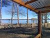 Seeblick, Wohnzimmer, 1 Schlafzimmer mit Doppelbett, 1 Schlafzimmer mit Etagenbett, kleines Duschbad, separate Küche, Zugang von der Küche zum Bad, überdachte Terrasse