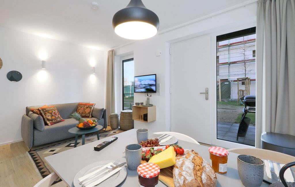 Velkommen til jeres lejlighed i stueetagen, som tilbyder en hyggelig og komfortabel atmosfære for op til fire personer, møbleret i skandinavisk stil. I finder et fuldt udstyret tekøkken og et badeværelse, der ikke lader noget tilbage at ønske. Uanset om det er i stuen eller på terrassen, kan I slappe af med familie eller venner, nyde spilleaftener eller nyde jeres middage.