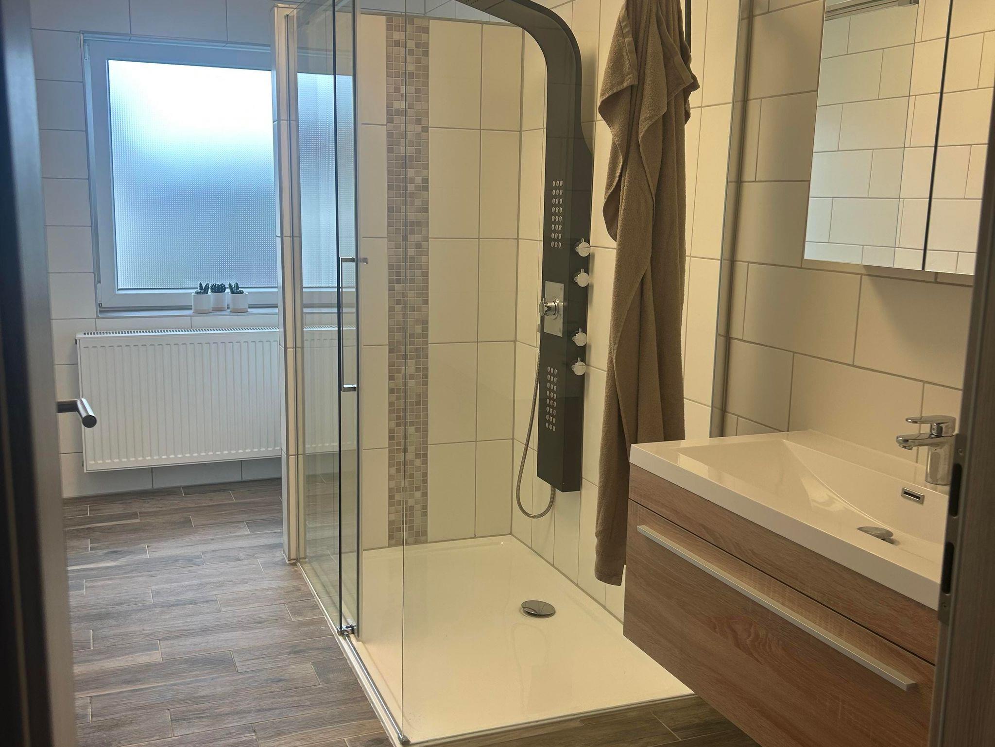 Auf 80 qm wird Wohlfühlen großgeschrieben. Das großzügige Schlafzimmer verfügt über ein gemütliches Doppelbett. Außerdem befinden sich im Wohnzimmer zwei Sofas welche als zusätzlichen Betten umfunktioniert werden können. Aus diesem Grund kann unsere Wohnung, ohne weiteres, von bis zu 4 Personen genutzt werden. Die Küche ist sehr geräumig und lädt zum Kochen und verweilen ein. Auch ein separater Außenbereich mit Terrasse und kleinem Garten steht Ihnen zur Eigennutzung zur Verfügung. Bei Ankunft sind die Betten bezogen. Zur Erstausstattung liegt pro Person ein Duschtuch sowie ein Handtuch für Sie bereit.
