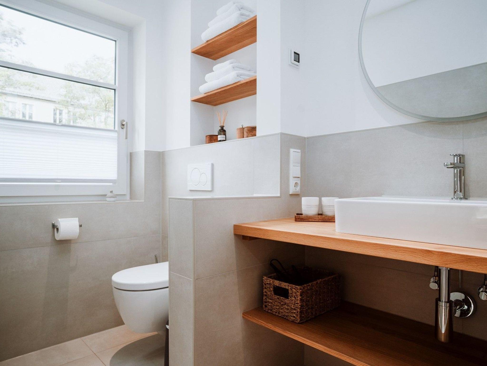 Die beiden Badezimmer verfügen je über eine große Walk-in Regendusche, sowie eine Fußbodenheizung.