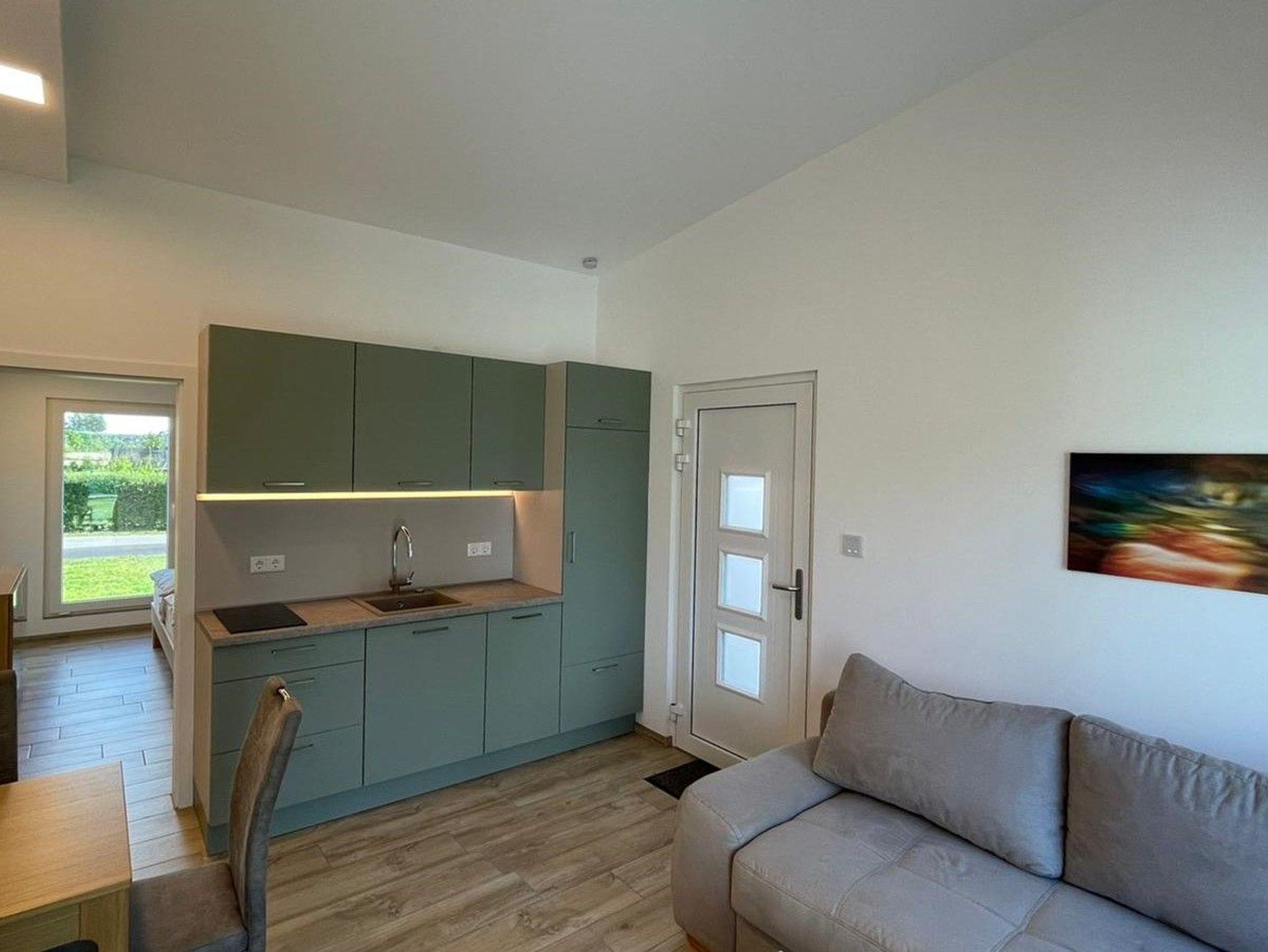 * 1 Wohnzimmer im EG mit Schlafsofa, SAT-TV, LAN/WLAN, Küchenzeile mit 165 Liter Kühlschrank und Gefrierfach,