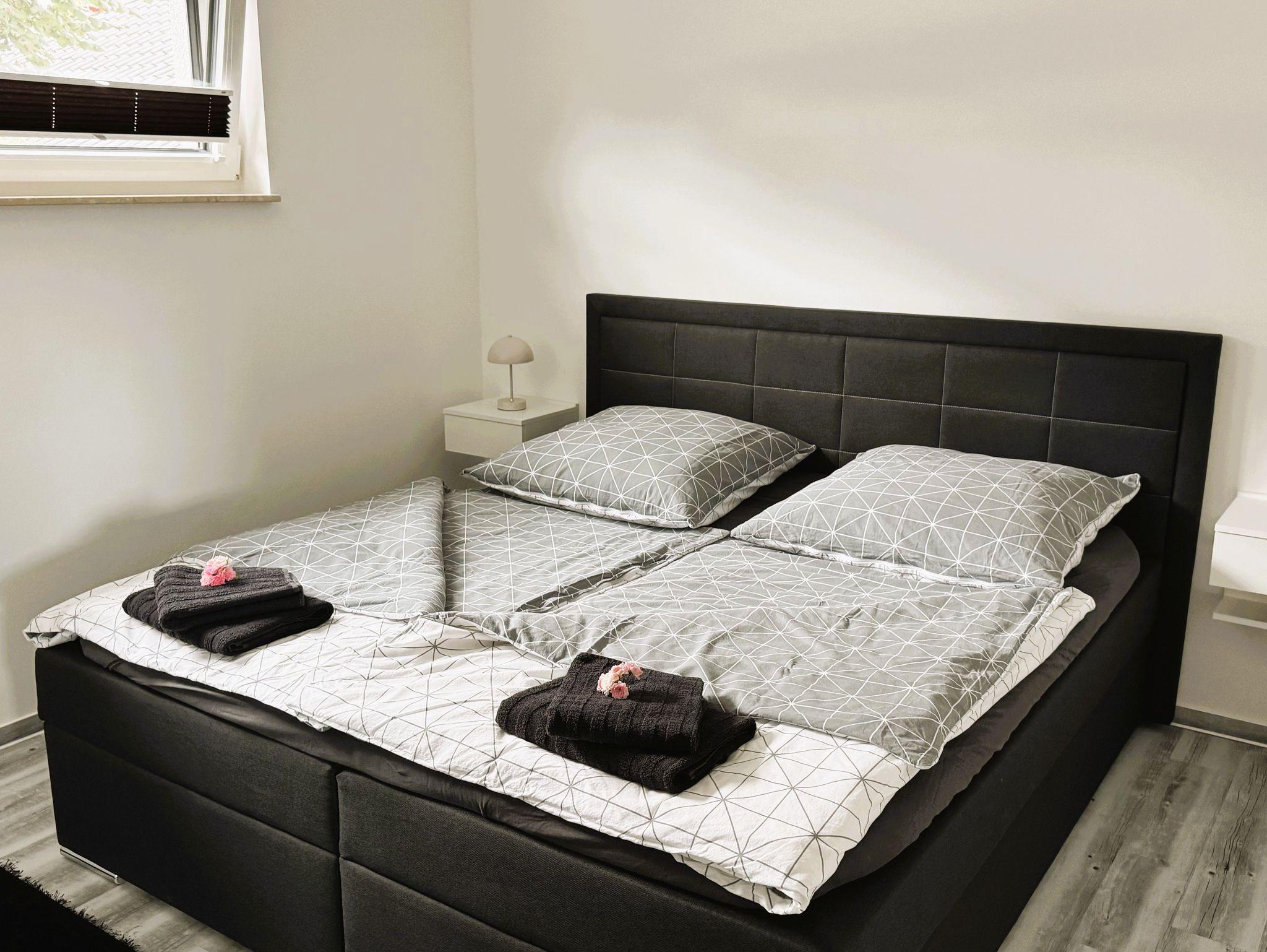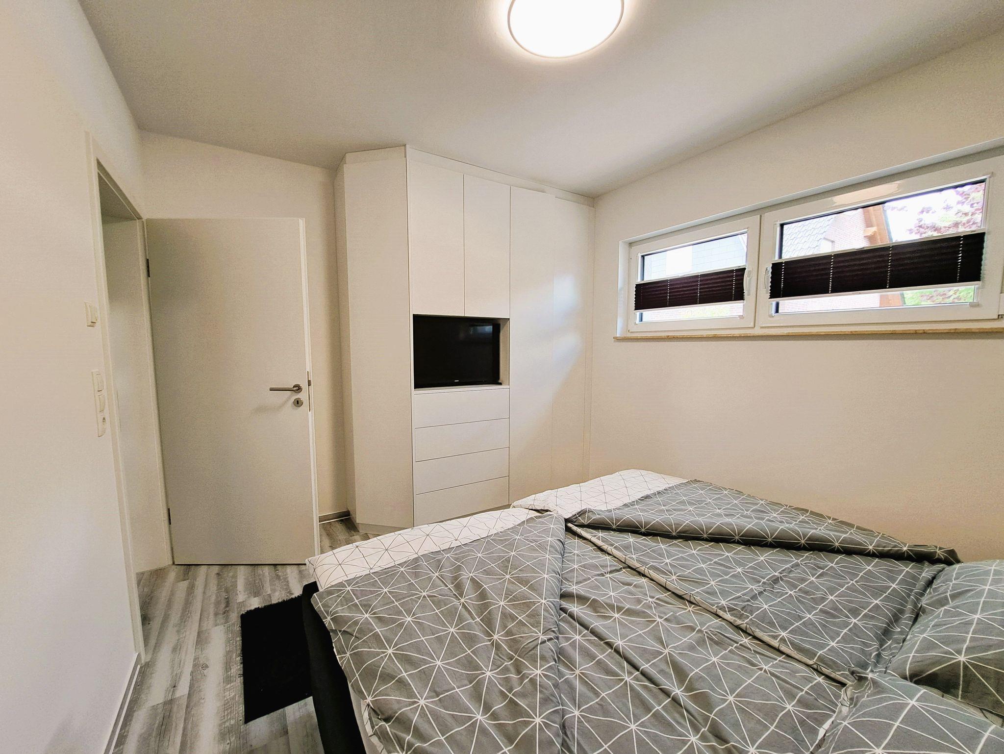 Das Schlafzimmer ist Ihr persönlicher Rückzugsort. Hier erwarten Sie ein gemütliches Doppelbett und ausreichend Stauraum im Kleiderschrank, um all Ihre Sachen bequem unterzubringen.