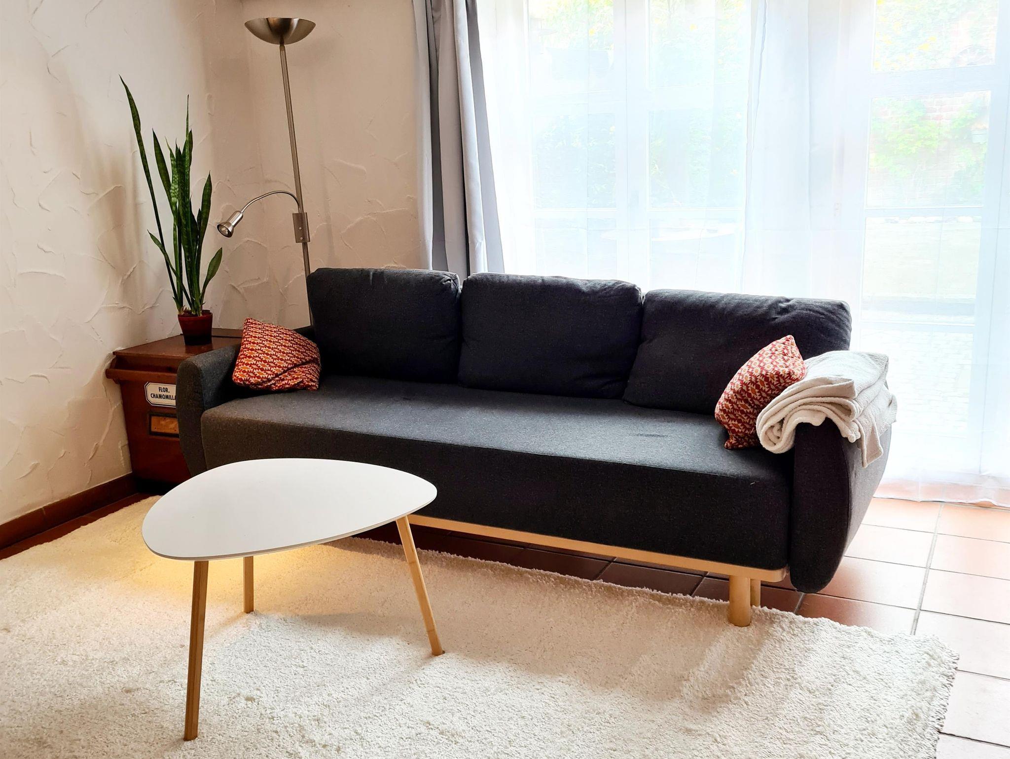 Ein Schlafsofa (1,40 m) für einen zusätzlichen Gast ist ebenfalls vorhanden.