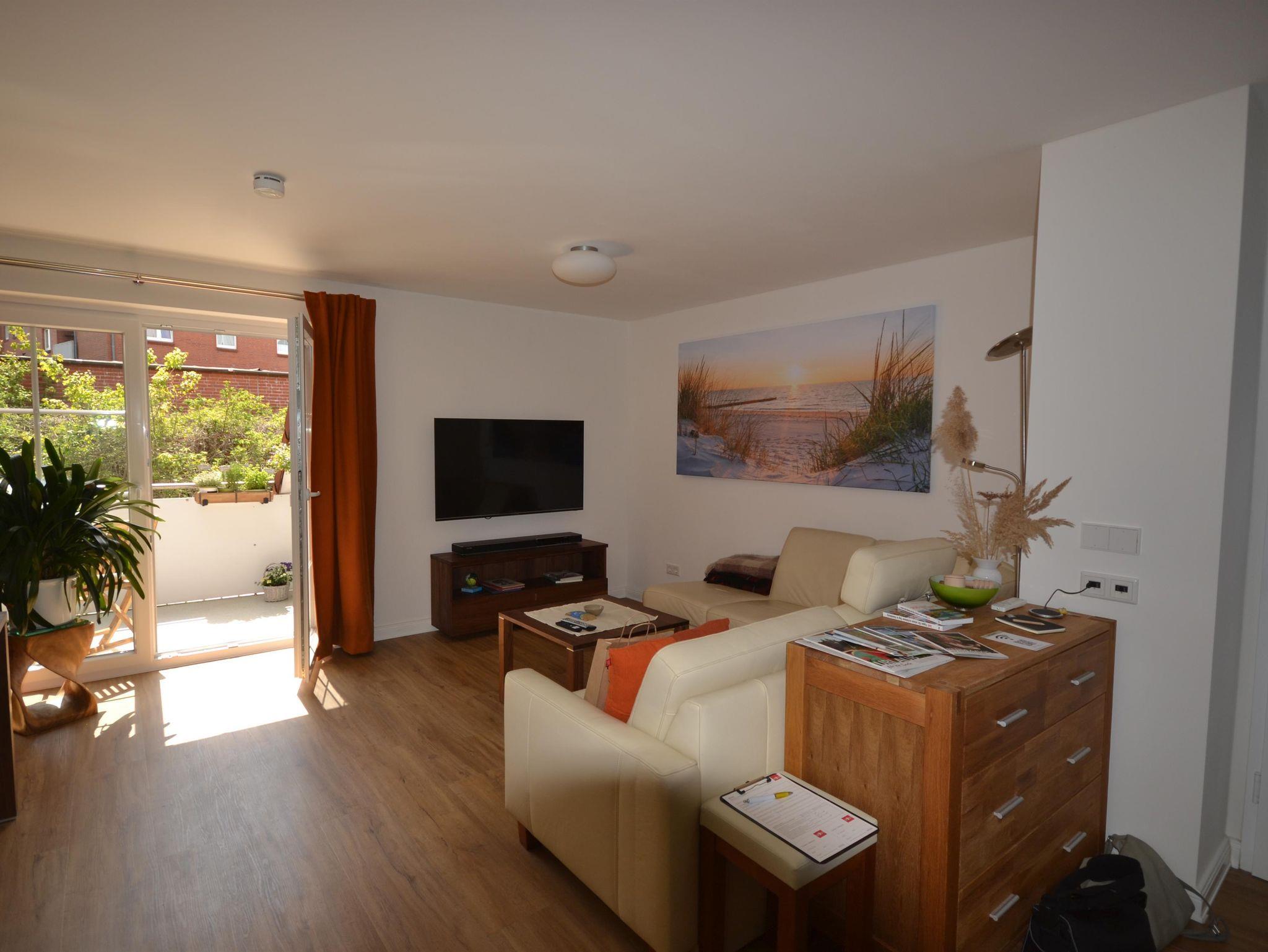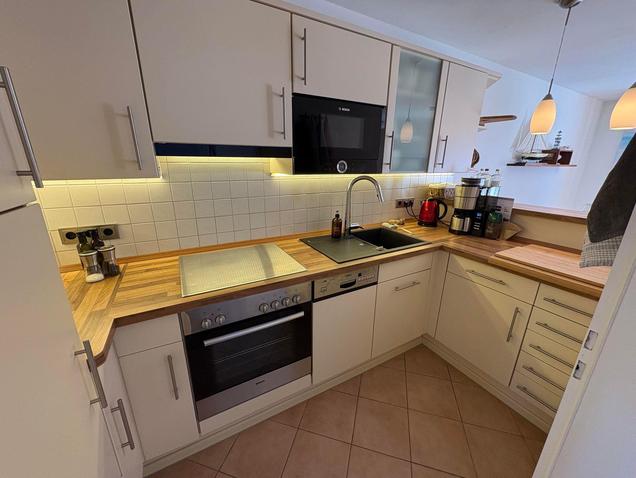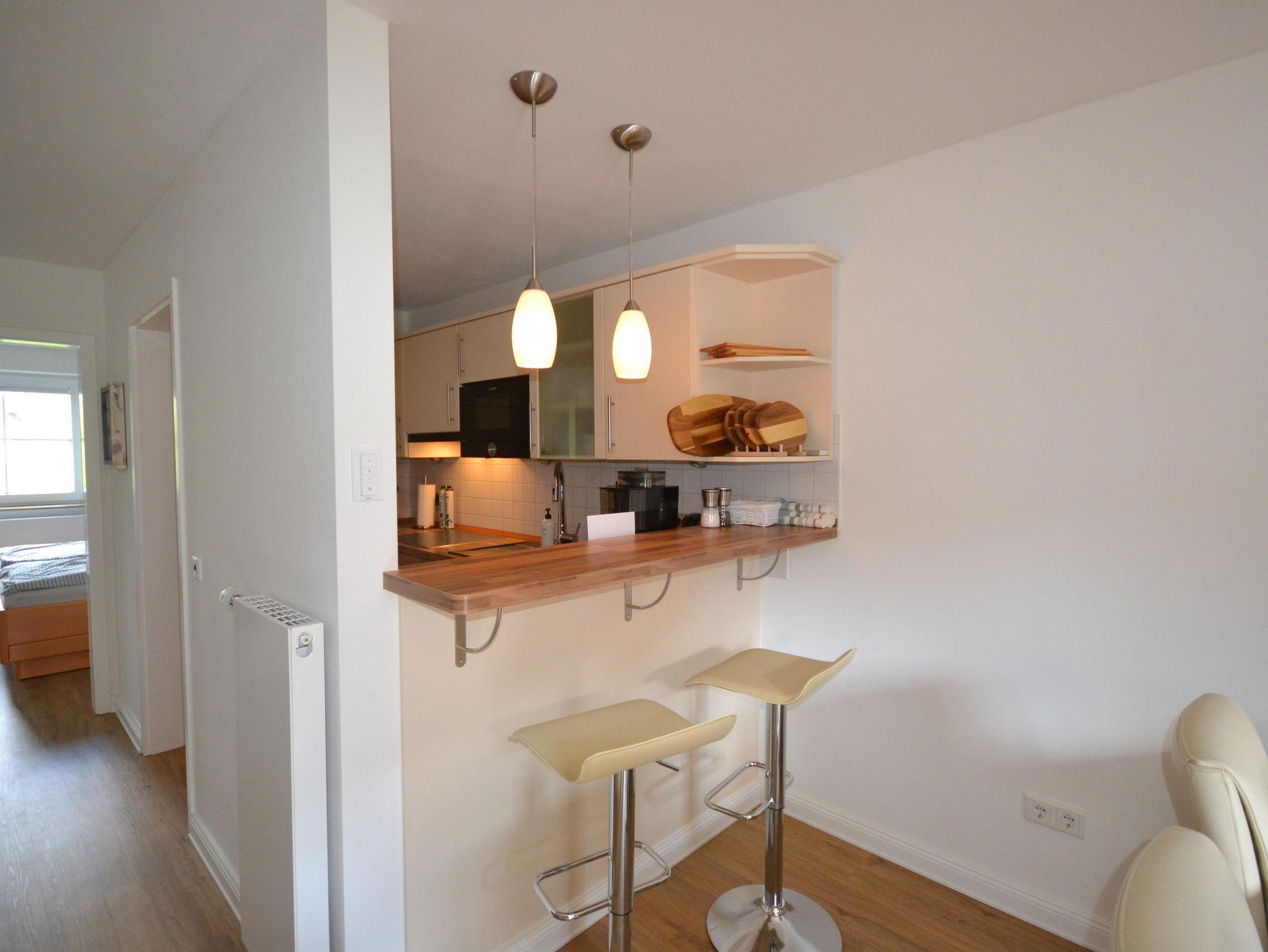 Die Ferienwohnung verfügt über ein großzügiges Wohnzimmer mit integrierter Küche, die mit einem Tresen vom Wohnbereich abgetrennt ist. Ein Schlafzimmer mit einem Doppelbett und das Badezimmer befinden sich auf der gleichen Etage, ein weiteres Schlafzimmer befindet sich im oberen Wohnbereich. Die Ferienwohnung mit großem Balkon ist komfortabel ausgestattet, sie verfügt über alle Annehmlichkeiten, die Sie in Ihrem Urlaub zur Erholung brauchen. Wir freuen uns auf Sie!