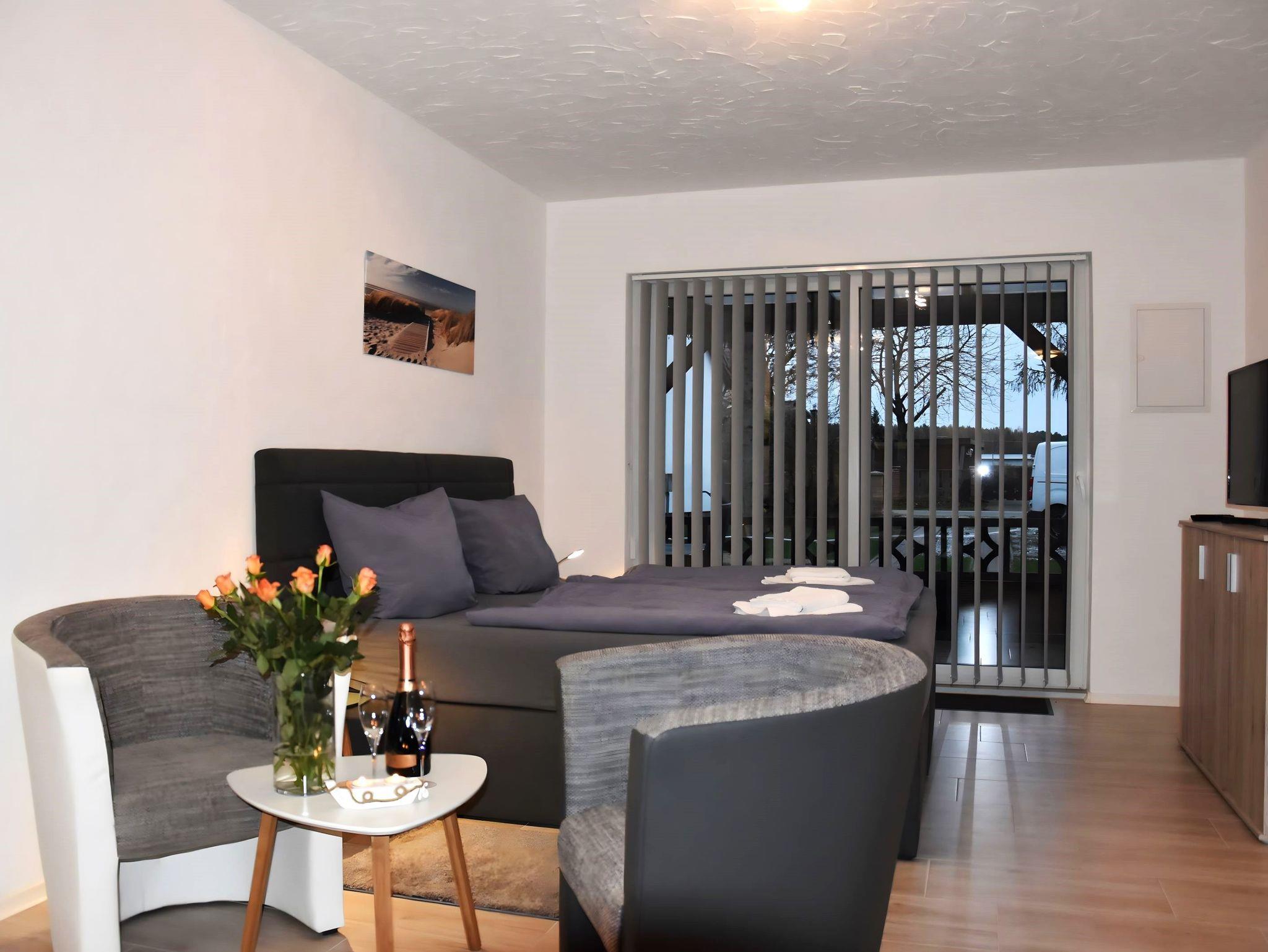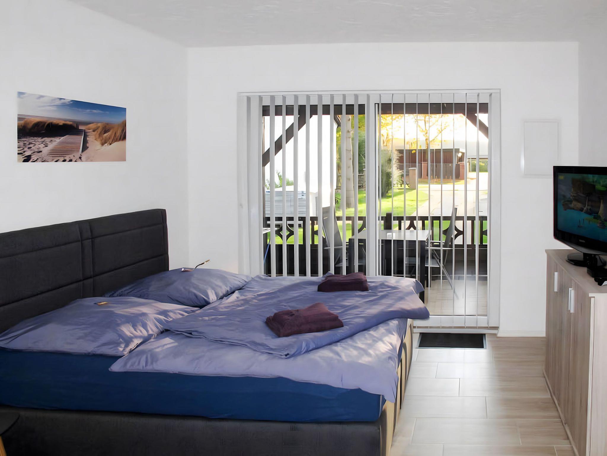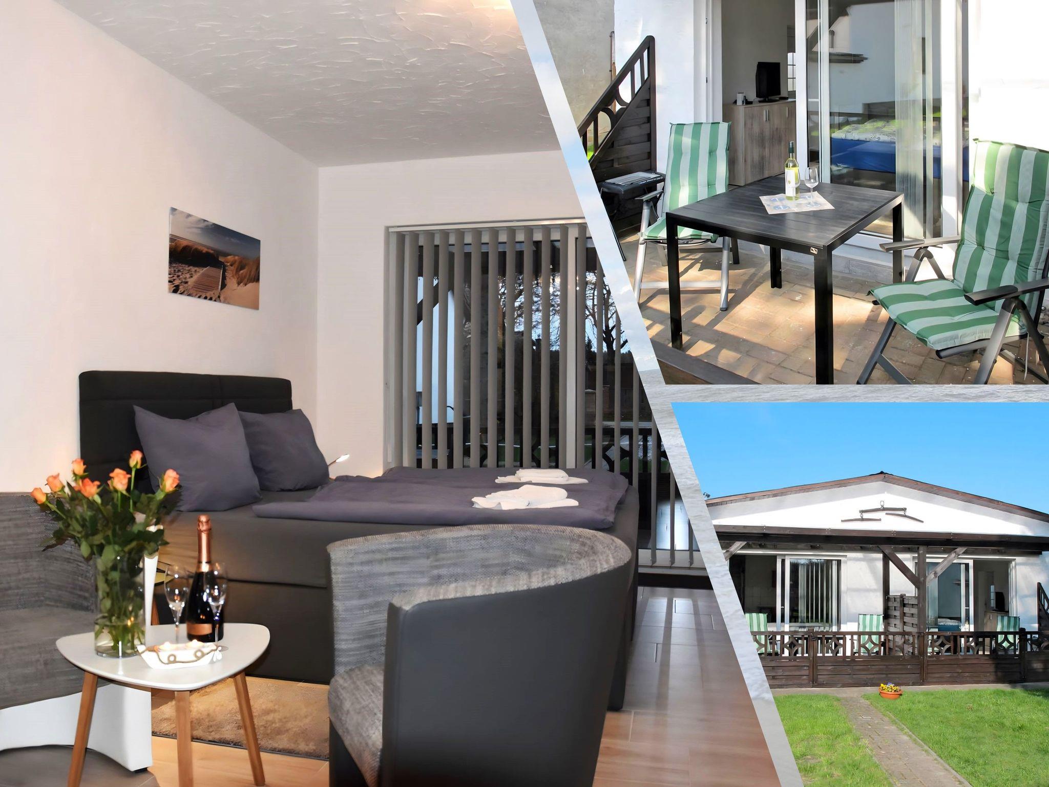 Unser Ferienhaus Wolkenlos bietet zwei großzügige 1-Raum-Apartements mit separatem Eingang und jeweils einer eigenen, überdachten Terrasse.